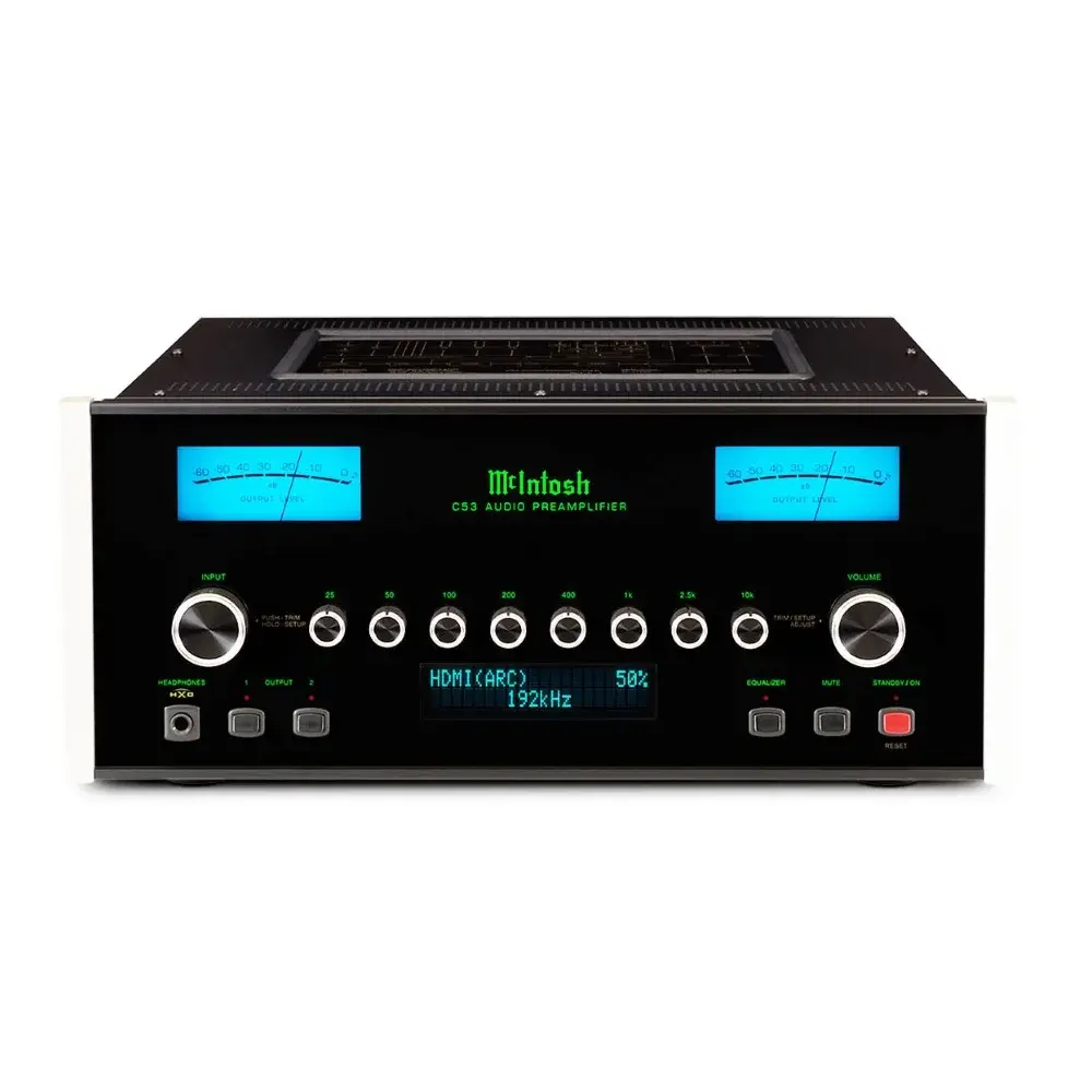 Регуляторы тона включают 8-полосный аналоговый эквалайзер; каждую полосу можно отрегулировать на ± 12 дБ, чтобы вы могли точно настроить музыку так, как вам нравится. Наш усилитель для наушников High Drive может питать практически любую пару наушников, в то время как Headfe Crossfeed Director (HXD®) может привнести дополнительное измерение в вашу музыку. Домашний кинотеатр Pass Through позволяет беспрепятственно интегрировать C53 в систему домашнего кинотеатра. Порты управления питанием позволяют легко включать и выключать другие подключенные компоненты McIntosh, а порты данных могут отправлять команды удаленного управления подключенным компонентам источника.