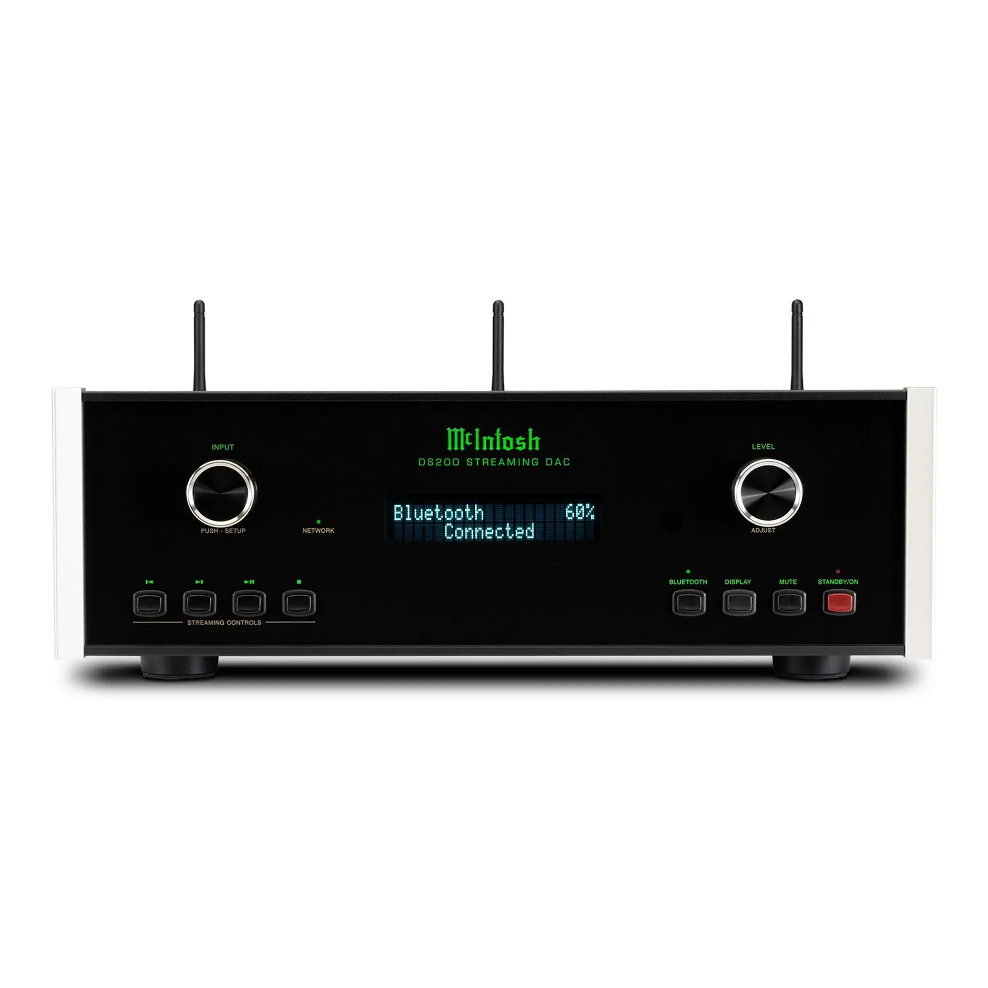Потоковый ЦАП DS200 создан с использованием неподвластной времени эстетики McIntosh и высококачественных материалов, таких как передняя панель из черного стекла, поворотные ручки управления, логотип с подсветкой и торцевые крышки из алюминия, обработанные на заказ. Порт ввода данных и порты управления питанием обеспечивают плавную интеграцию с другими компонентами McIntosh, а порт управления RS232 можно использовать в более сложных установках. В комплект поставки входит пульт дистанционного управления.