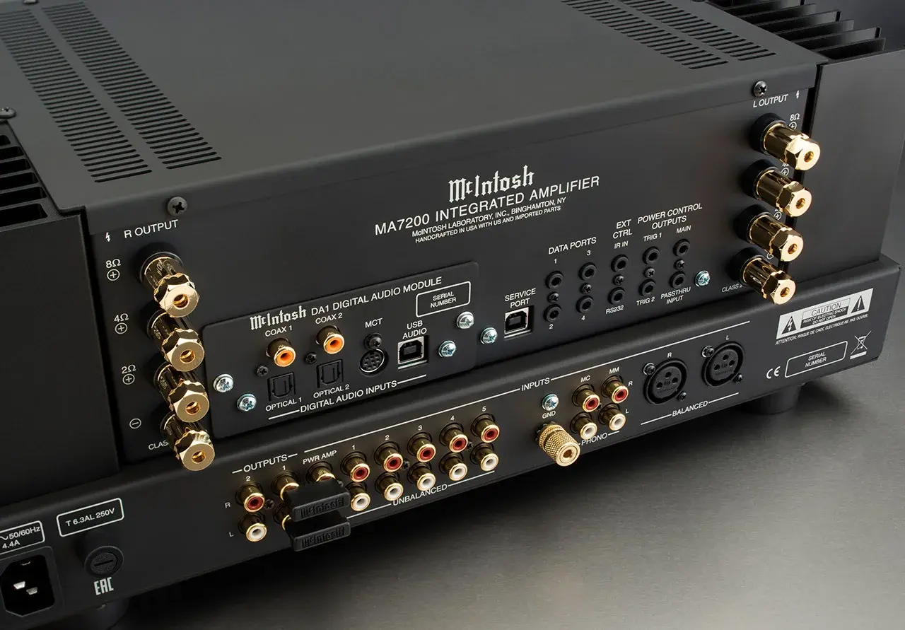 MCINTOSH MA7200 может легко стать основой вашей 2-канальной домашней аудиосистемы. 14 входов состоят из 8 аналоговых подключений (5 небалансных, 1 балансный, 2 входа фонокорректора ММ и МС для вертушек), 6 цифровых (2 коаксиальных,2 оптических плюс 1 USB и 1 фирменный MCT для использования с нашим MCINTOSH MCT450). Цифровые входы размещены в новом цифровом аудио модуле DA1, который можно легко заменить будущими модулями, чтобы поддерживать MA7200 в актуальном состоянии с использованием новейших цифровых аудиотехнологий. DA1 поставляется с 8-канальным 32-разрядным цифро-аналоговым преобразователем (ЦАП), используемым в режиме Quad Balanced. Вход USB принимает сигналы PCM до 32 бит / 384 кГц и поддерживает до DSD256 и DXD 384 кГц для воспроизведения звука высокого разрешения, а коаксиальные и оптические входы будут декодировать музыку до 24 бит / 192 кГц. Всем входам могут быть присвоены пользовательские имена для удобного управления и настройки системы.