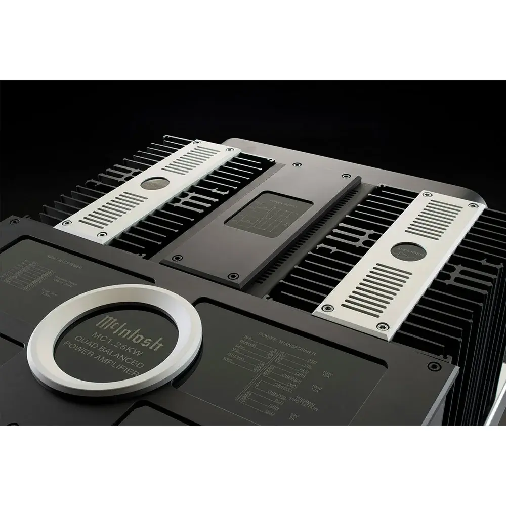 Обновлений и улучшений MC1.25KW. Увеличение емкости фильтра блока питания на 50% повышает производительность низких частот, а также увеличивает динамический запас. Дизайн обновленной верхней части усилителя произведен с претензионной точностью на промышленном оборудовании McIntosh, и повторяет фирменные контуры продуктов McIntosh тех, которые были сделаны несколько десятилетий назад. Звуковой Autoformer и силовой трансформатор остаются расположенными непосредственно за передней панелью, но теперь они изолированы в новых раздельных корпусах. Между ними находится новое округлое окно, в котором расположен логотип, украшенный декоративной отделкой.