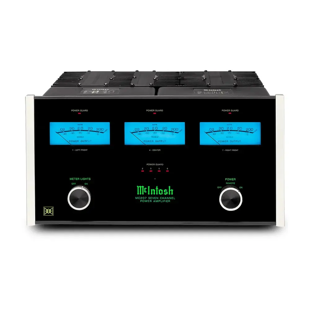 Новая технология McIntosh Dynamic Power Manager (динамическое управление мощностью) гарантирует, что каждый владелец MC207 получит всю мощность, на которую рассчитывал при покупке. В отличие от других усилителей с высоким выходным током, MC207 отдает полную мощность 200 ватт х 7 каналов при работе как с 4-омными, так и с 8-омными громкоговорителями. Даже калибровка индикаторов изменяется в соответствии с нагрузкой!