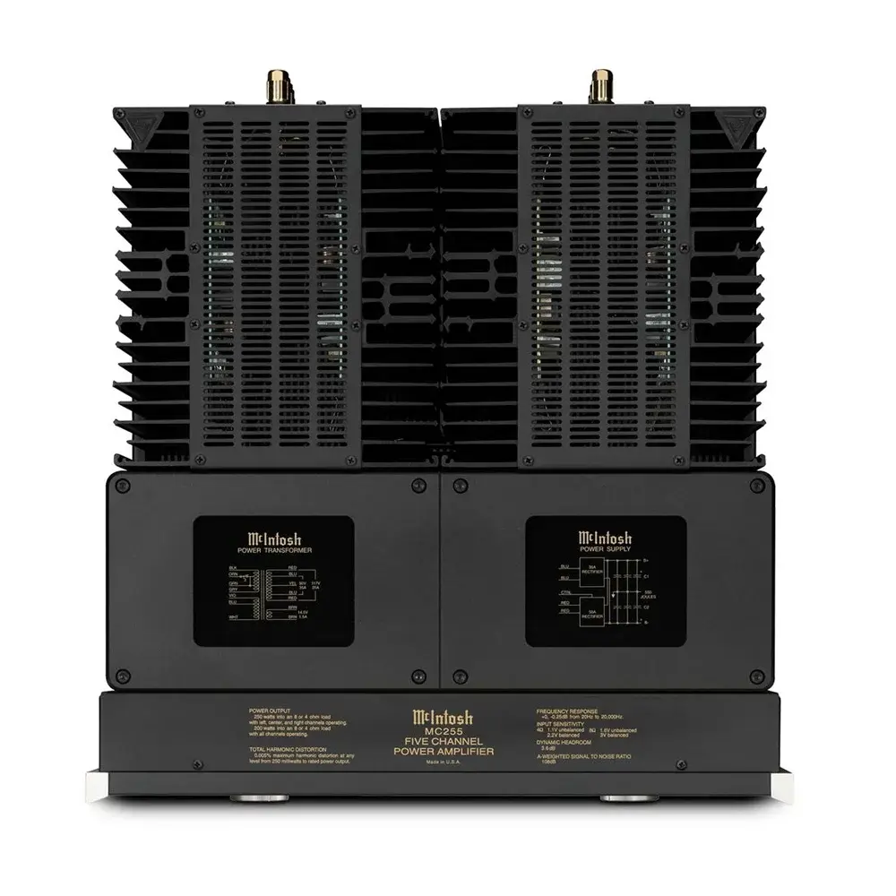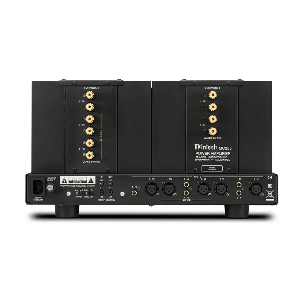 McIntosh MC255 может использоваться для питания обычного 5-канального домашнего кинотеатра; его можно подключить к цифровым усилителям MI128 или MI254 в домашних кинотеатрах с дополнительными динамиками объемного звука для использования с объектными форматами 3D-аудио, такими как Dolby® Atmos, DTS: X ™ и Auro-3D®; или его можно использовать в конфигурации с двумя зонами, когда три фронтальных канала используются при 250 WPC в одной зоне, а два канала объемного звука используются при 200 WPC во второй звуковой зоне в вашем доме.