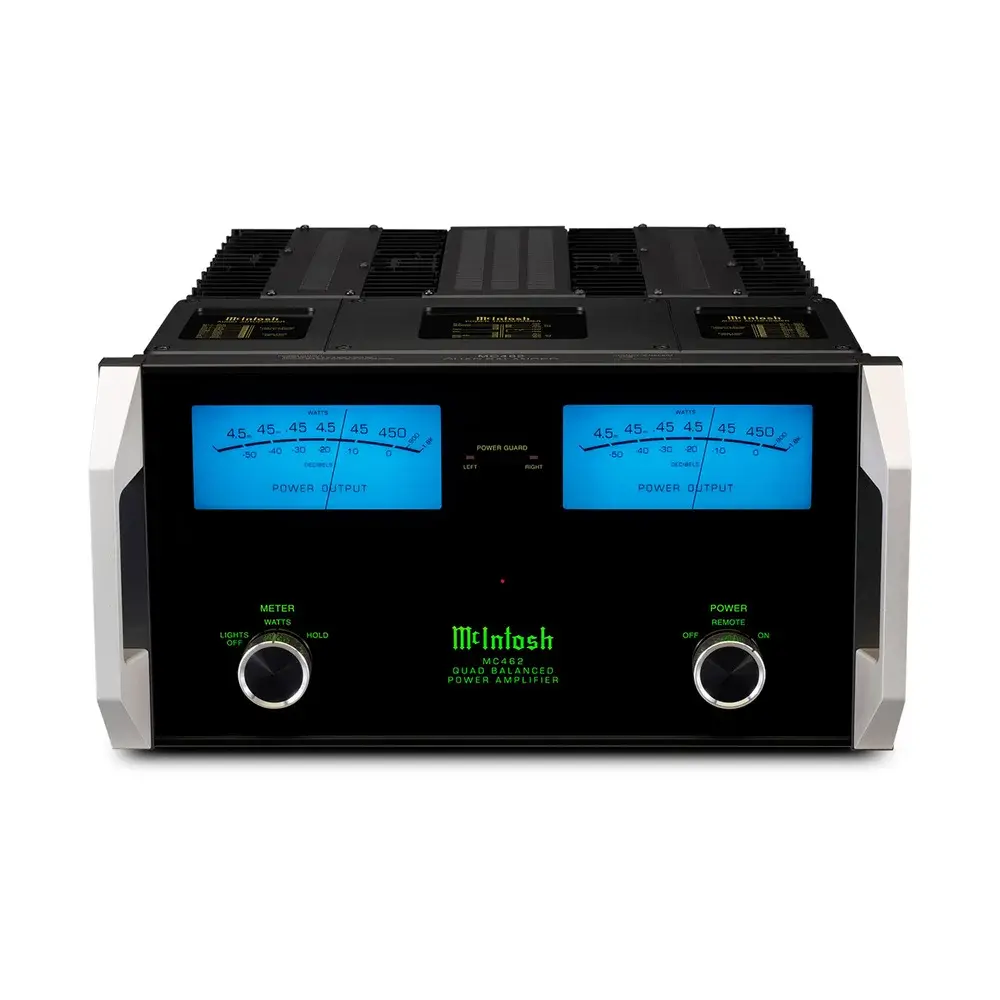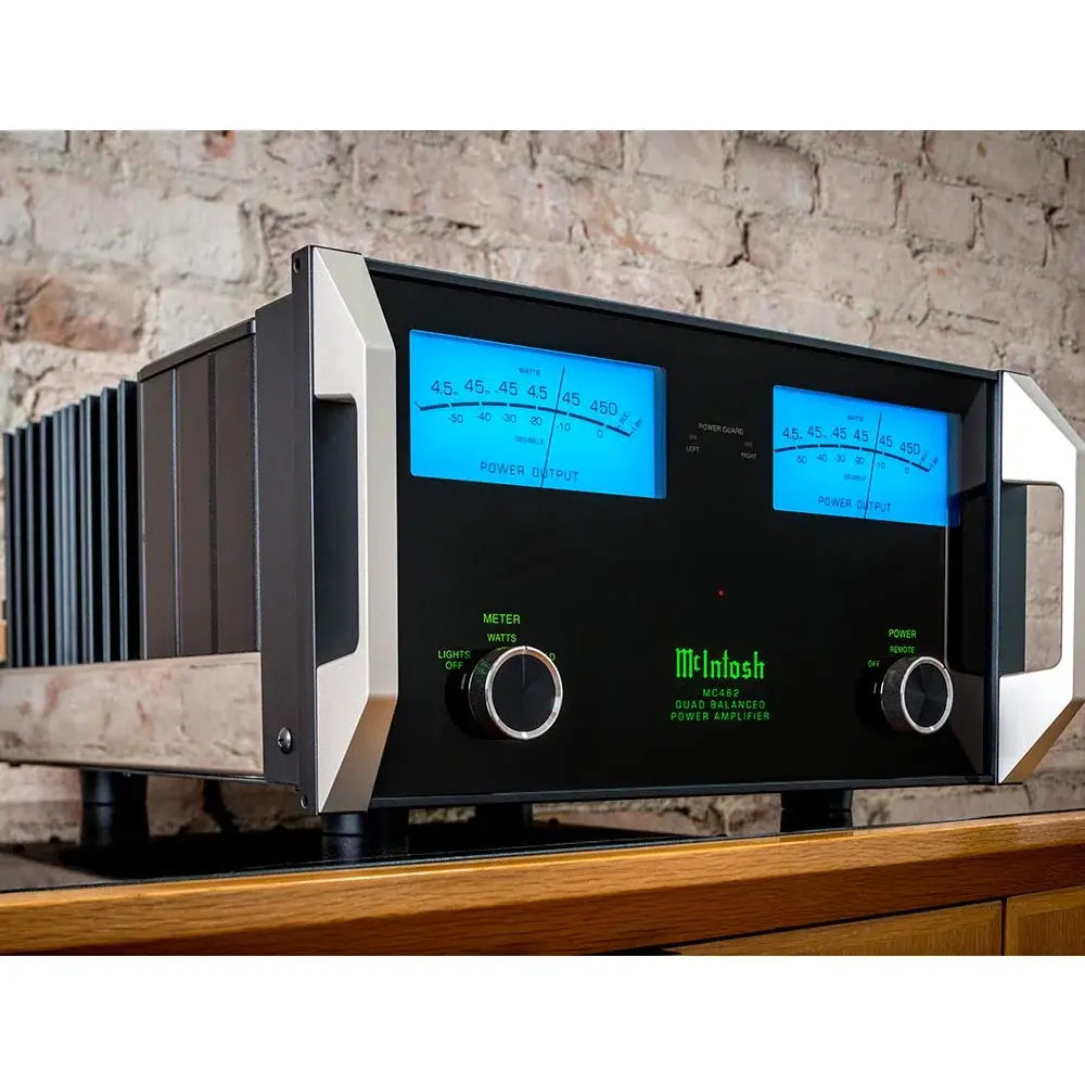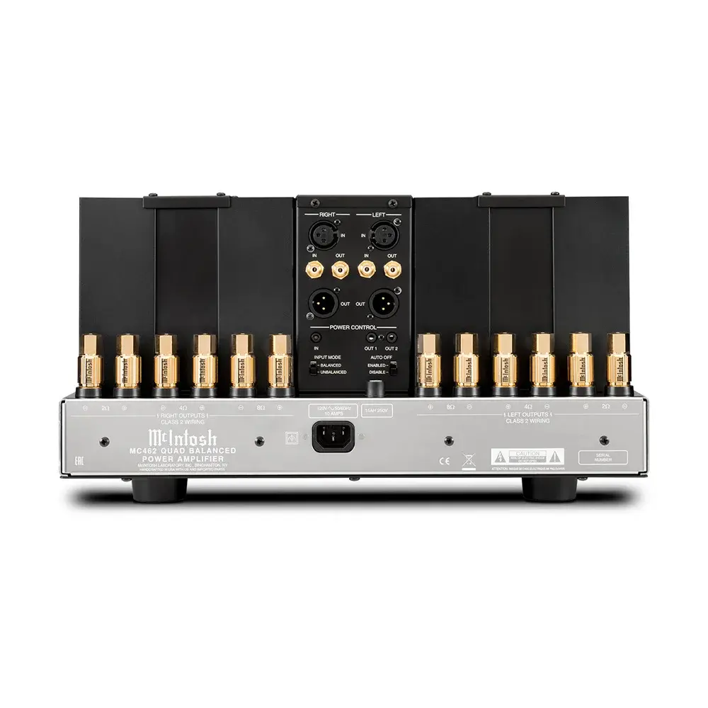 Балансные и небалансные выходы облегчают каскадное подключение усилителей и громкоговорителей; они также могут использоваться для отправки аудиосигнала во вторичную систему, если ваш предусилитель не имеет достаточного количества выходов или для подключения активного сабвуфера. MC462 смонтирован на красивом полированном корпусе из нержавеющей стали и оснащен нестареющей передней панелью из черного стекла McIntosh, подсветкой логотипа, алюминиевыми ручками управления, и парой быстро реагирующих синих ваттметров.