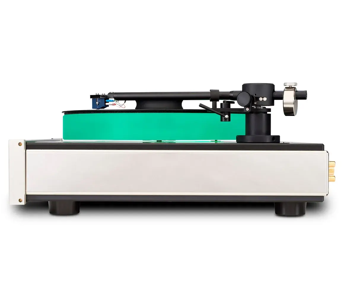Материалом для него служит специальный акрил (silicone acrylic). Диск использует керамический подшипник с магнитным подвесом, что обеспечивает ему максимально плавный ход с минимальным трением. Для прижима виниловой пластинки имеется клэмп. Субдиск выполнен из анодированного алюминия. Задействован малошумный электромотор постоянного тока со щетками из нержавеющей стали, который производится в Швейцарии. Крутящий момент передается от двигателя к субдиску посредством пассикового привода. Питание подается от внешнего адаптера.