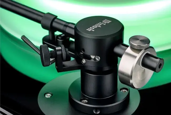 Установлен прямой тонарм с жесткой дюралюминиевой трубкой и противовесом-эксцентриком. Применяются керамические и сапфировые подшипники. Тонарм оборудован регулируемой магнитной системой антискейтинга. В его шелле закреплен МС-картридж Sumiko Blue Point No.2 с высоким выходным напряжением в 2,5 мВ, благодаря чему проигрыватель можно подключать даже к корректорам, предназначенным для головок звукоснимателя с подвижным магнитом. Иглодержатель выполнен из алюминия. Игла имеет эллиптический профиль и отличается высокой точностью отслеживания дорожки.