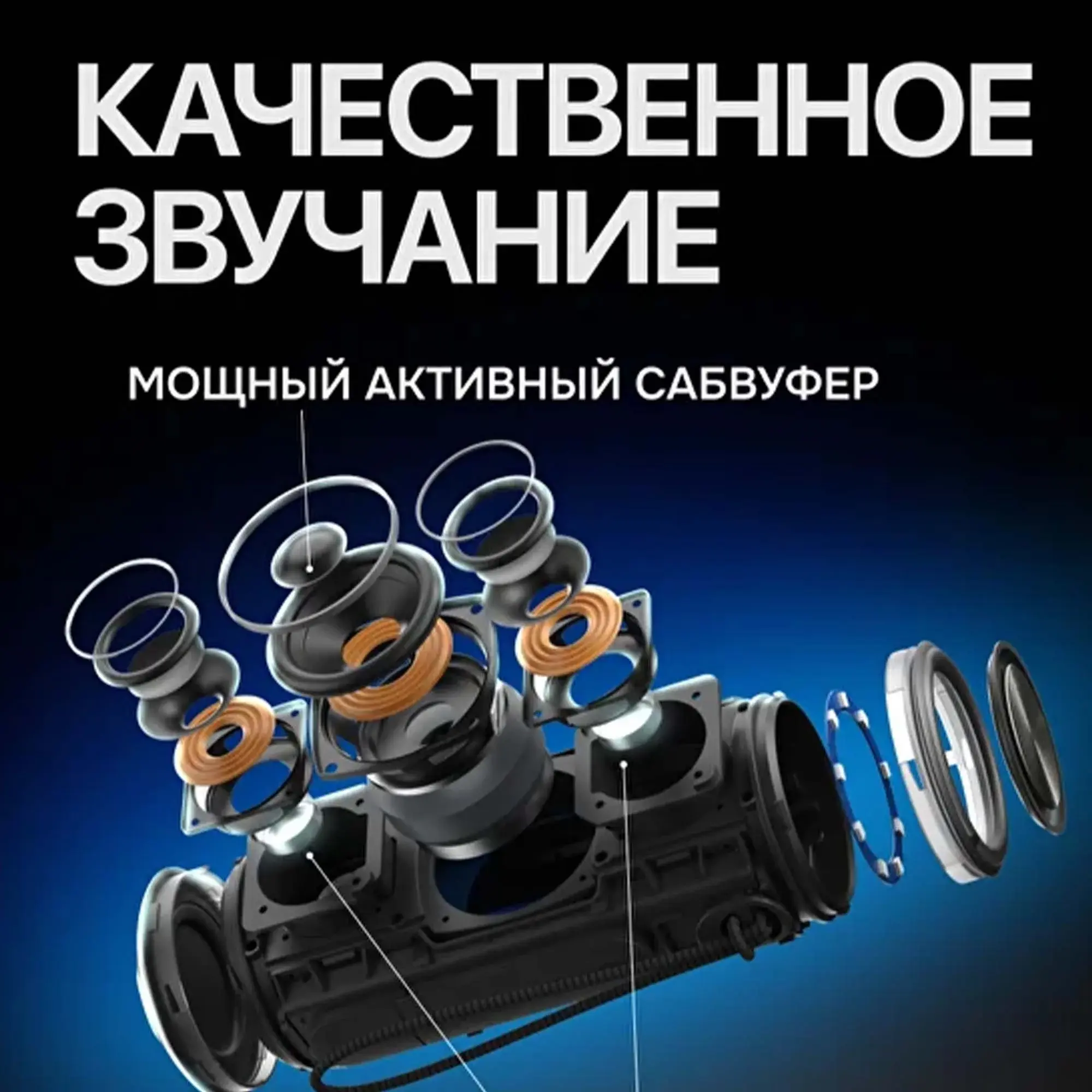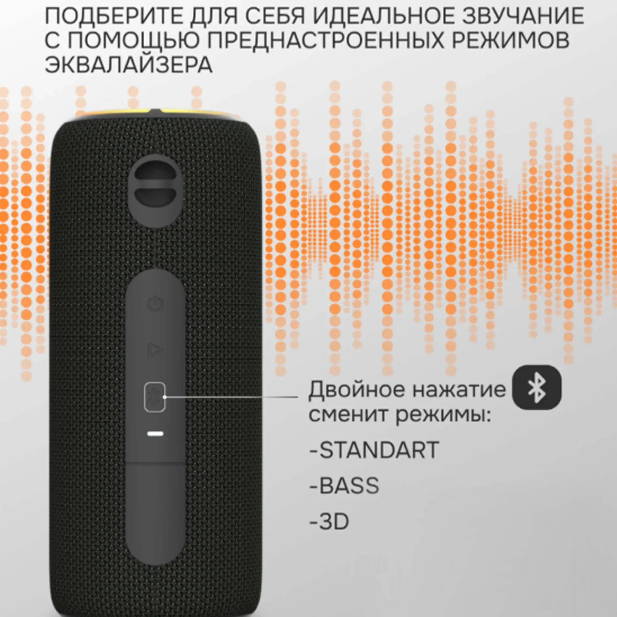 Устройство способно проработать более 12 часов подряд в музыкальном фоновом режиме, это достигается при выключенной RGB-подсветки и при уровне громкости в два нажатия. Воспроизводите треки, с карт microSD или внутренней памяти устройств с помощью Bluetooth, c битрейтом не менее 320 кбит/с (обратите внимание, что музыкальные стриминговые сервисы могут использовать более сжатый формат, что напрямую влияет на качество и громкость воспроизводимого контента).