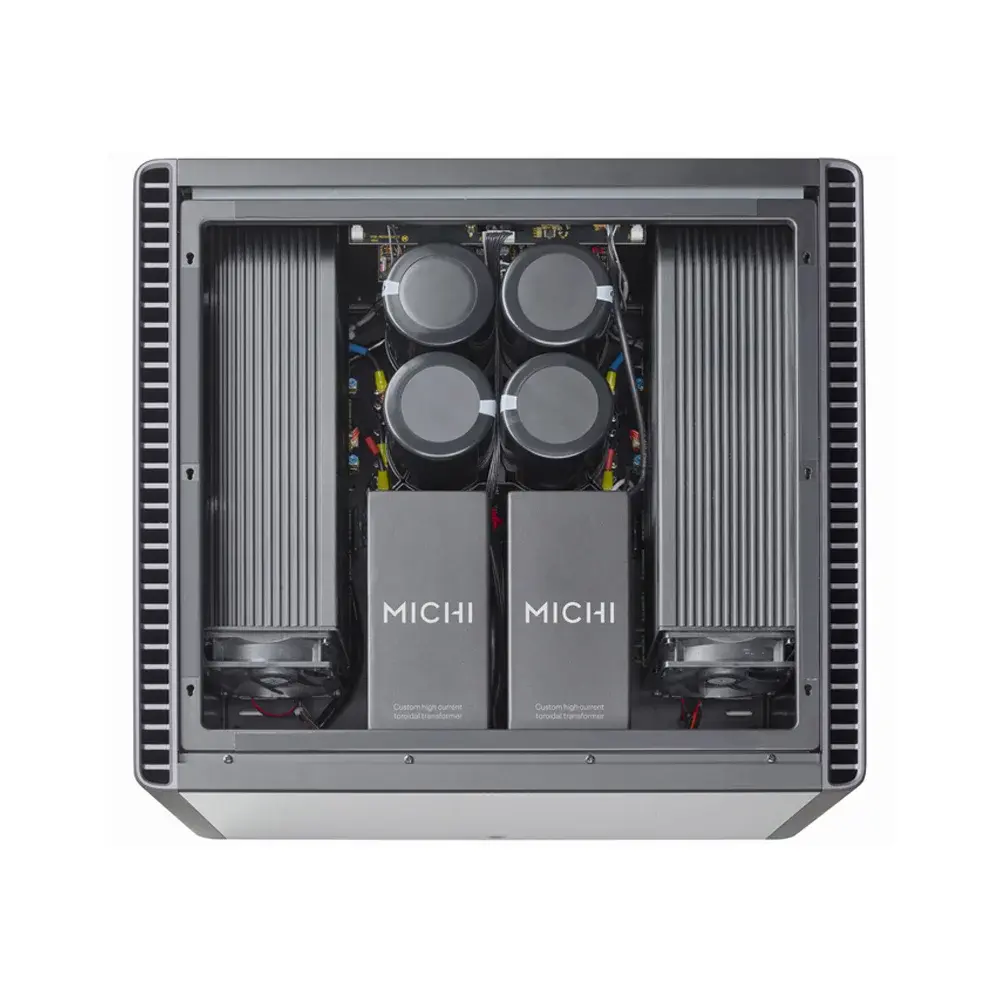 Ошеломляющий контроль колонок и авторитетная мощь моноблока Michi M8 - результат идеального баланса науки и искусства. Он выдает 1.080 Вт в классе AB на 8 Ом и поразительные 1.800 Вт для самых требовательных акустических систем с импедансом до 4 Ом. M8 оснащен парой малошумных тороидальных трансформаторов, сконструированных самостоятельно и изготовленных на заказ на собственной фабрике. К ним подключены 4 патентованных британских накопительных конденсатора с перфорированными фольговыми обкладками, высокой эффективностью и быстрым временем разряда (ESR) – для впечатляющего баса - с исключительным контролем колонок даже при экстремальных условиях нагрузки.