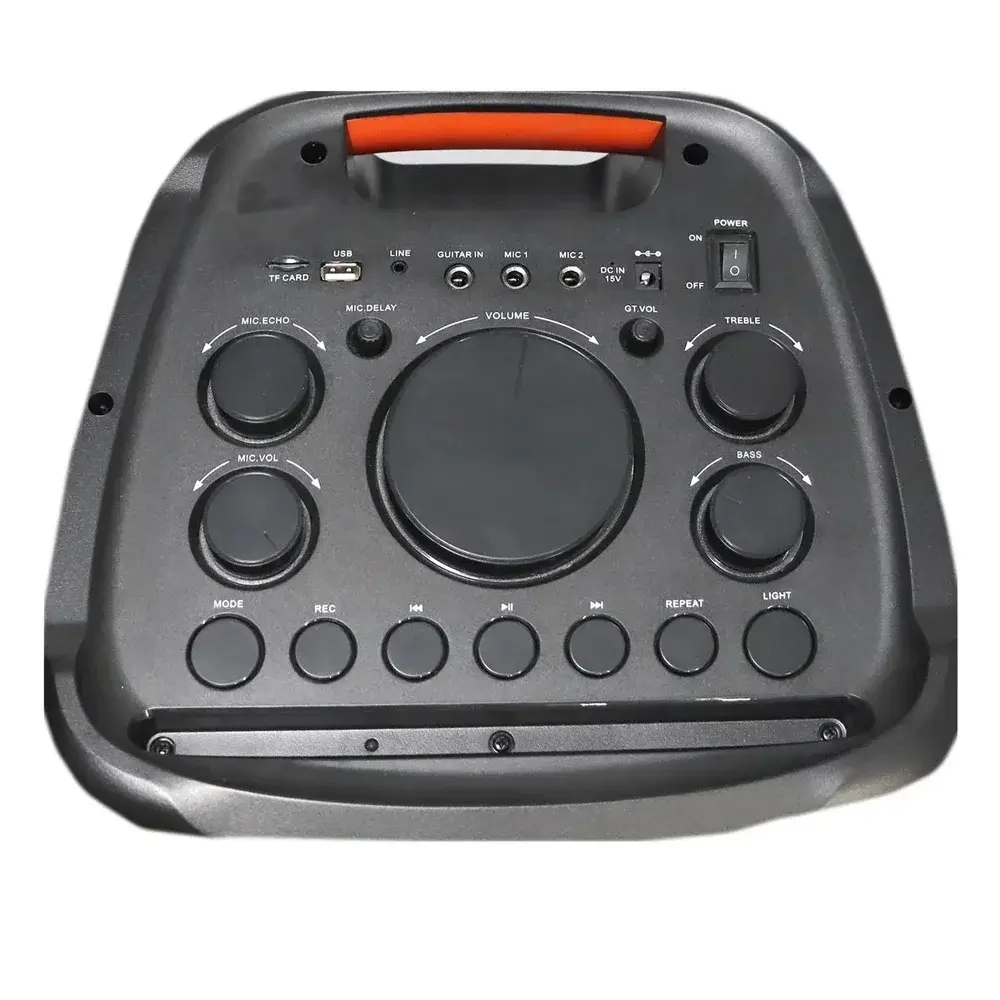 вход: Bluetooth, Aux, USB, TF-карта, 2 разъема для микрофонов, 1 разъем для гитары;