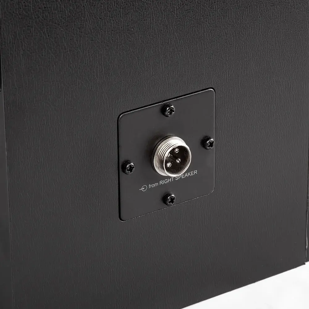 Для обеспечения естественного и сбалансированного звучания корпус выполнен из дерева (МДФ) – материал, минимально откликающийся на звук и наиболее эффективно выдерживающий климатические воздействия. Для повышения действующего объёма, минимизации призвуков и амортизации звуковых колебаний внутреннее пространство заполнено демпфирующим материалом.