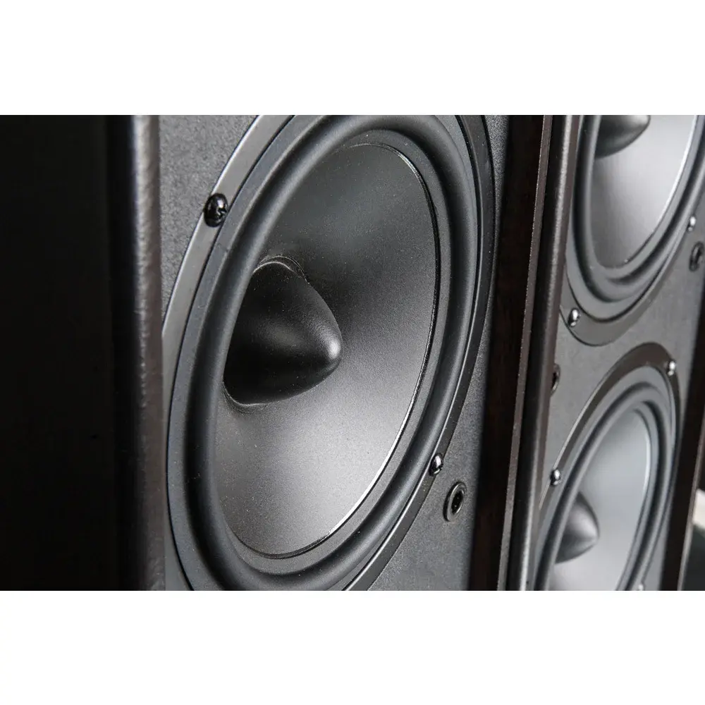 Трапециевидная форма с наклоном передней панели не только придаёт колонкам современный вид, но и препятствует возникновению нежелательных резонансов внутри корпуса, обеспечивает наиболее направленное звучание к слушателю. Фазоинвертор позволяет значительно понизить нижнюю граничную частоту АС и увеличивает уровень её звукового давления на низких частотах. Съёмные защитные сетки позволяют экспериментировать с оформлением внешнего вида системы и делают уход за колонками более удобным.