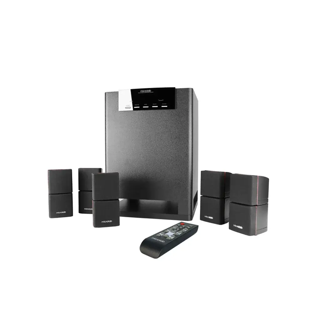 Современный дизайн легко вписывается в домашний декор. Сабвуфер оснащен встроенным усилителем, который управляет динамиками. Звук воспроизводится точно с минимальными искажениями с помощью качественных динамиков. Сателлитные твитеры, расположенные по углам вашей комнаты, обеспечивают динамичное звучание. Такое расположение аналогично тем, что используются в кино для создания звукового движения для создания реалистичной атмосферы. Сателлиты предназначены для размещения на столе или подвешивания на стенах. Для вашего удобства в комплект входит инфракрасный пульт дистанционного управления. Функции передней панели и пульта дистанционного управления позволяют управлять уровнем звука и эффектами.