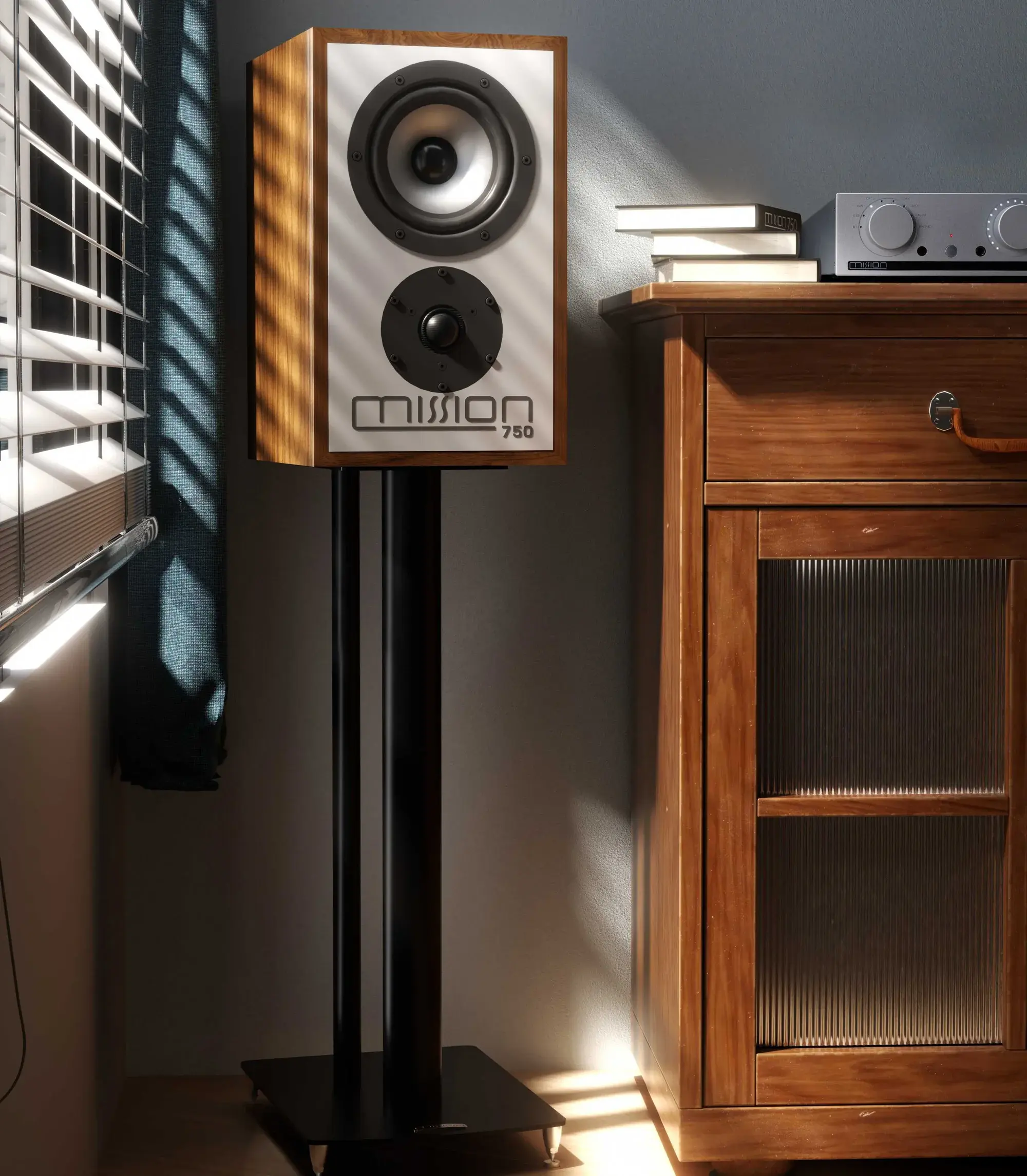 Как и для флагманских 770, Mission разработала новый НЧ/СЧ-динамик с полипропиленовым диффузором и магнитную систему для конкретной модели Mission 750. Порт фазоинвертора был тщательно профилирован как внутри, так и снаружи для достижения очень низких искажений и расширения басов до частот ниже 42 Гц в помещении. У Mission 750 такой же твитер, как у флагманской модели 770 и 700, со специально демпфированной задней камерой для 28 мм купола, который обеспечивает сверхгладкие высокие частоты.