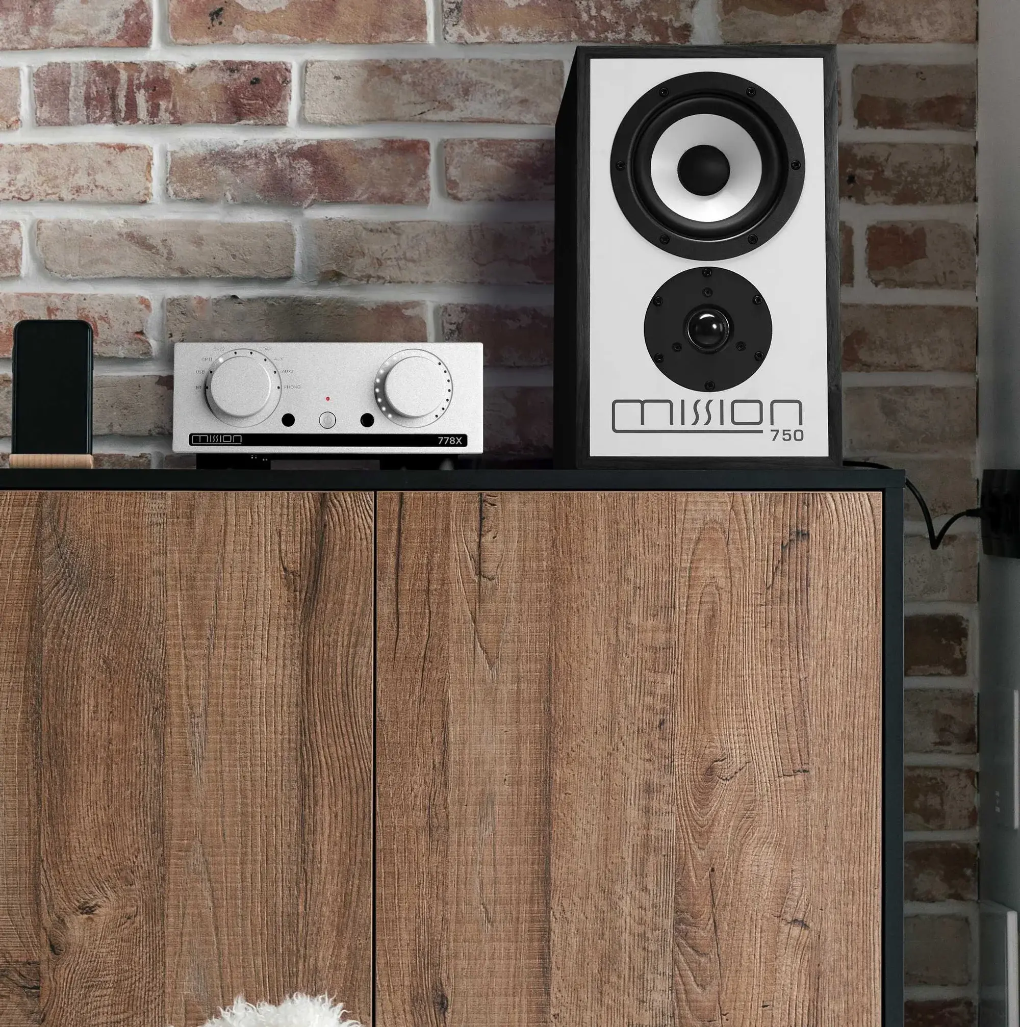 Вновь ставшая знаменитой белая передняя панель и логотип Mission узнаваемы мгновенно. Так же, как и насыщенный черный или ореховый шпон натурального дерева, хотя и в формате, более удобном для небольших помещений и упрощающем размещение.