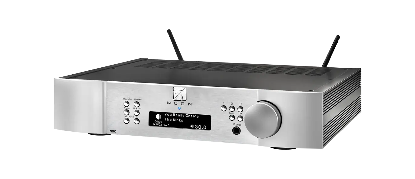 Moon by Simaudio 390 - сетевой проигрыватель в корпусе которого спрятан ЦАП, предусилитель, усилитель для наушников, фонокорректор (MM/MC) и стример. За основу SimAudio Moon 390 взяты предусилитель 350P и ЦАП 380D. В новой модели совмещен функционал этих двух устройств и добавлено несколько важных опций, включая возможность слушать музыку с потоковых сервисов Tidal Masters, Qobuz Sublime+ и Deezer Hi-Fi. Встроенный преобразователь поддерживает форматы PCM до 32 бит/384 кГц, DSD256 и MQA.