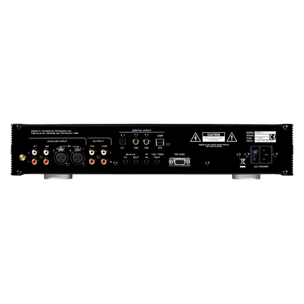 Одна из функций усилителя это плата ЦАП, которая добавляет два коаксиальных и один оптический вход, порт USB-B, с поддержкой DSD256 и DXD (PCM 384 кГц/32 бит). Симметричные выходы XLR для наушников размещены в закрытой нише на лицевой панели. Кроме того, на задней панели есть симметричный вход XLR, два входа и два стерео выхода RCA, ИК порт, разъем RS-232C, вход/выход SimpLink и выход триггера на 12 вольт.