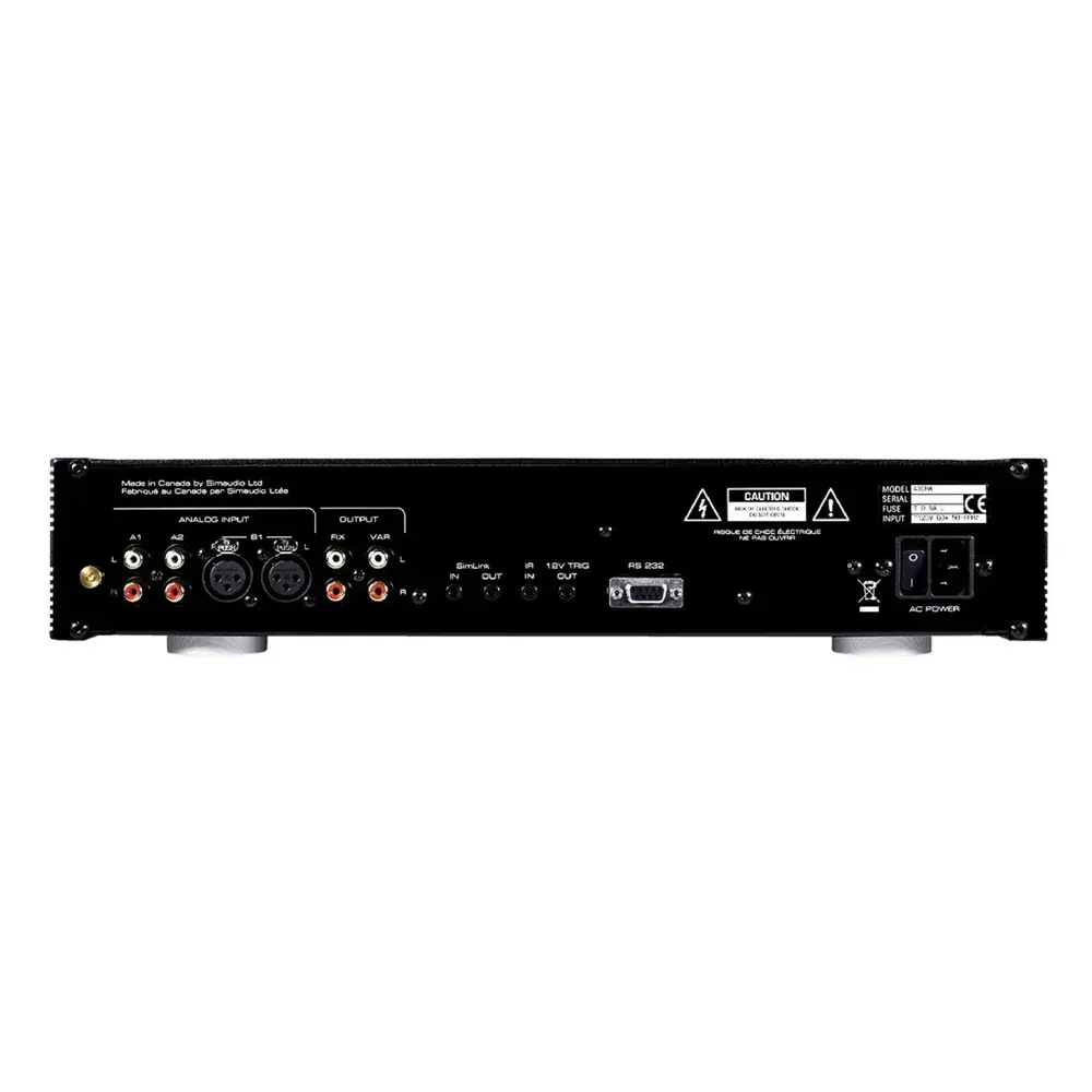 С усилителем можно использовать дополнительную плату ЦАП, которая добавляет два коаксиальных и один оптический вход, порт USB-B, с поддержкой DSD256 и DXD (PCM 384 кГц/32 бит). Симметричные выходы XLR для наушников размещены в закрытой нише на лицевой панели. Кроме того, на задней панели есть симметричный вход XLR, два входа и два стерео выхода RCA, ИК порт, разъем RS-232C, вход/выход SimpLink и выход триггера на 12 вольт.