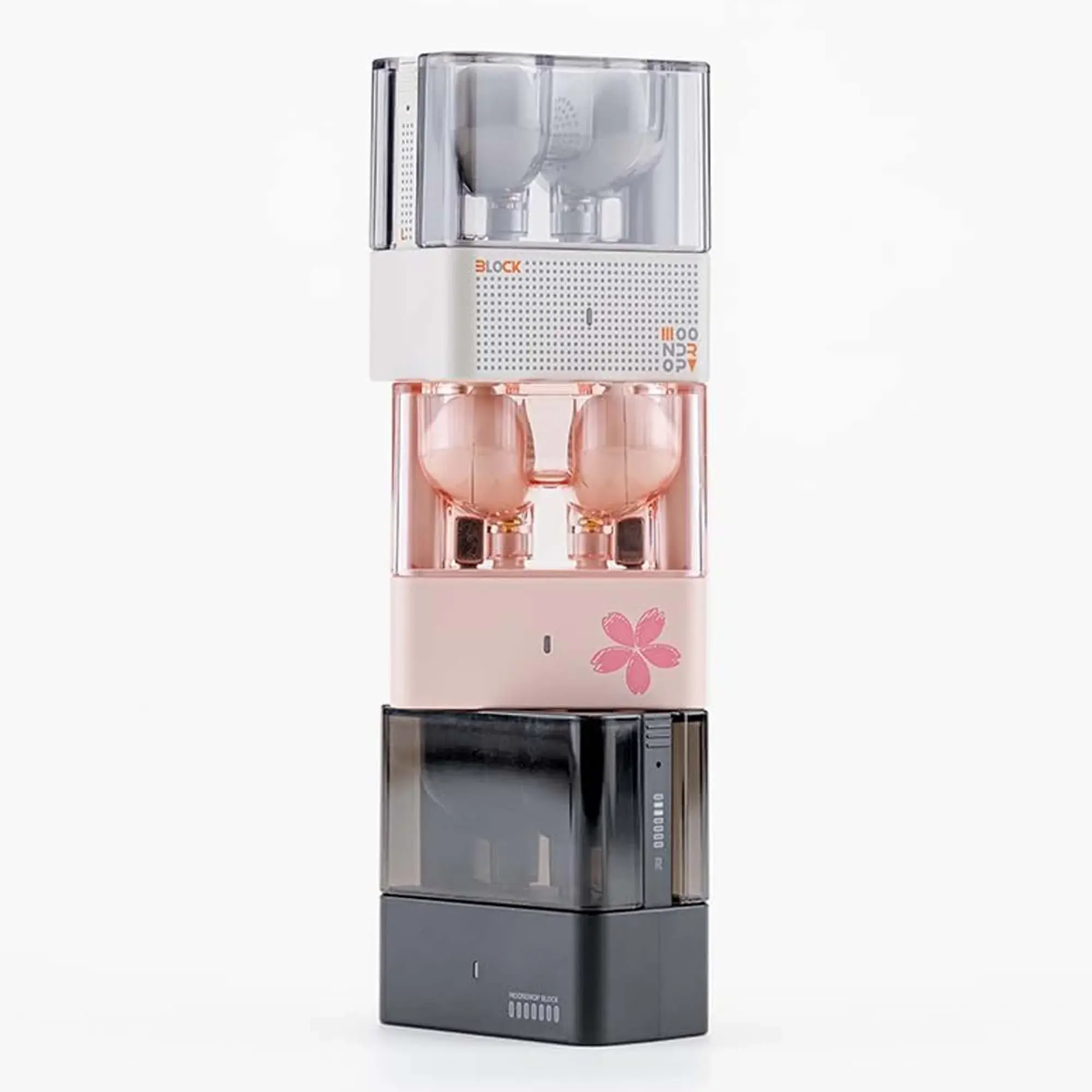 Moondrop Block имеет форму, отличную от большинства TWS-наушников, доступных на рынке. Плоская форма вкладыша способна обеспечить высокий комфорт при длительных прослушиваниях. Конструкция плоского вкладыша восходит к эпохе кассетных плееров и транзисторных радиоприемников. Moondrop взяли этот классический дизайн и добавили функционал TWS-наушников, такой как подключение Bluetooth V5.4, встроенный чип SOC для оптимизации DSP и тому подобное.