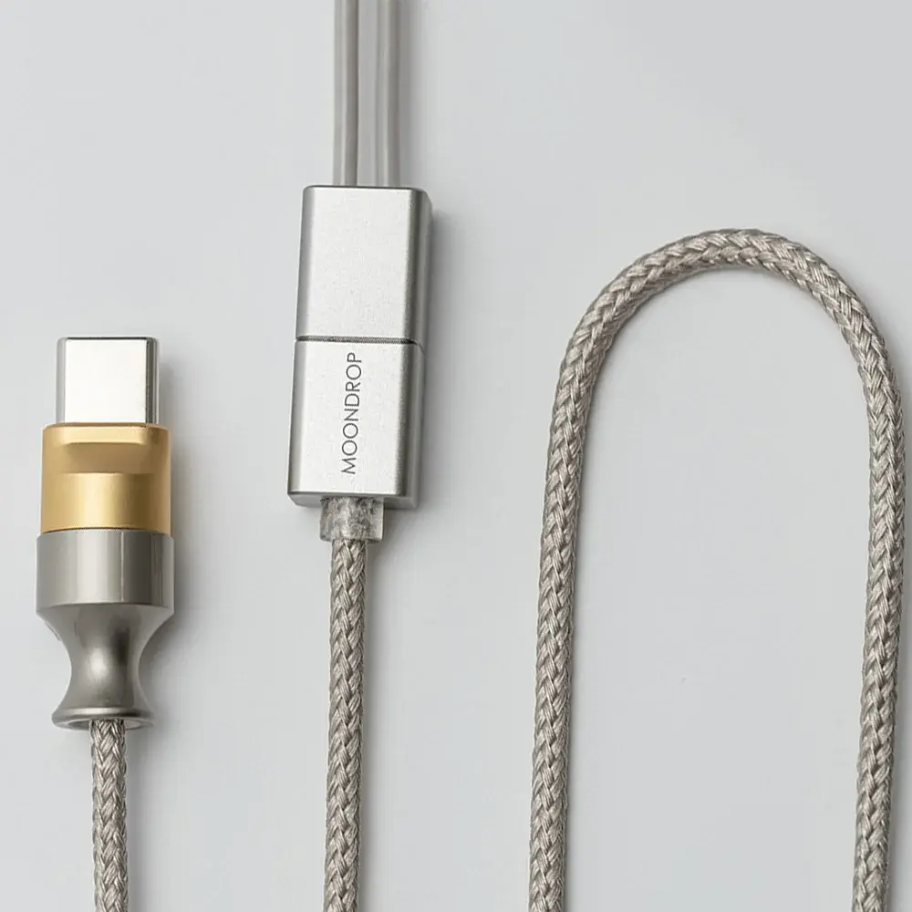 Кабель был разработан в сотрудничестве с ddHiFi, известным брендом в индустрии аудиоаксессуаров и аудиокабелей HiFi, для для обеспечения исключительного качества звука. Кабель состоит из линий для передачи данных и сигнального кабеля. Длина кабеля для передачи данных составляет приблизительно 85 см, а длина кабеля для передачи сигнала - около 35 см. Для передачи данных в кабеле используется высококачественная хлопчатобумажная нить, смешанная с полиэфирной нитью в скрученном сетчатом рукаве, что делает его прочным, мягким и способный поглощать звук при ударе. Проводящая часть кабеля для передачи данных скручена через равные промежутки времени для обеспечения стабильной передачи и снижения помех. Что касается части передачи сигнала, то внешняя оболочка изготовлена из композитного цветного ПВХ, импортируемого из Соединенных Штатов, а внутренние сигнальные катушки изолированы друг от друга. Корпус разветвителя выполнен с помощью обработки на станке с ЧПУ, что придает ему гладкий дизайн без винтов. Кабель светло-коричневого цвета с металлическими деталями из титана создает визуально успокаивающий внешний вид.