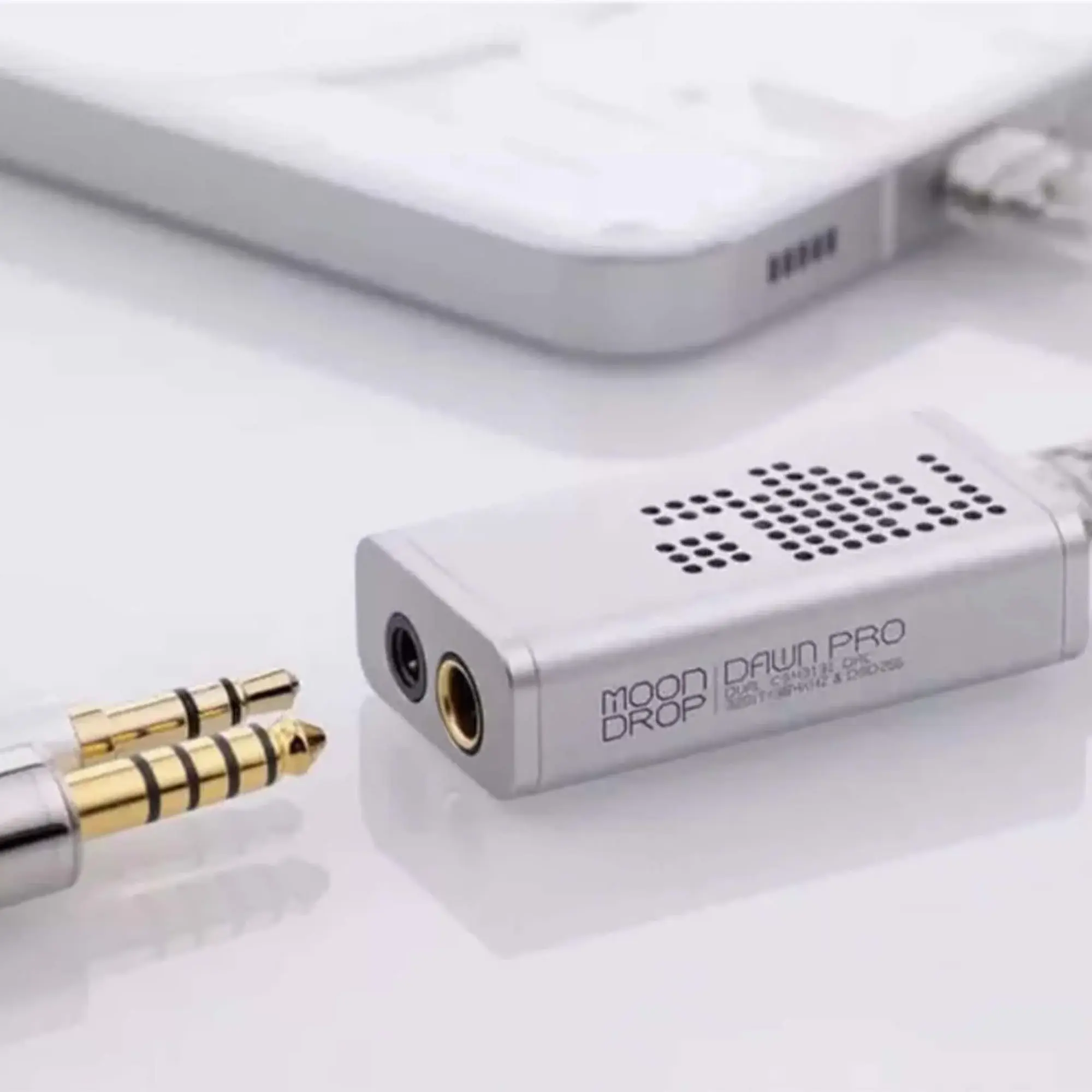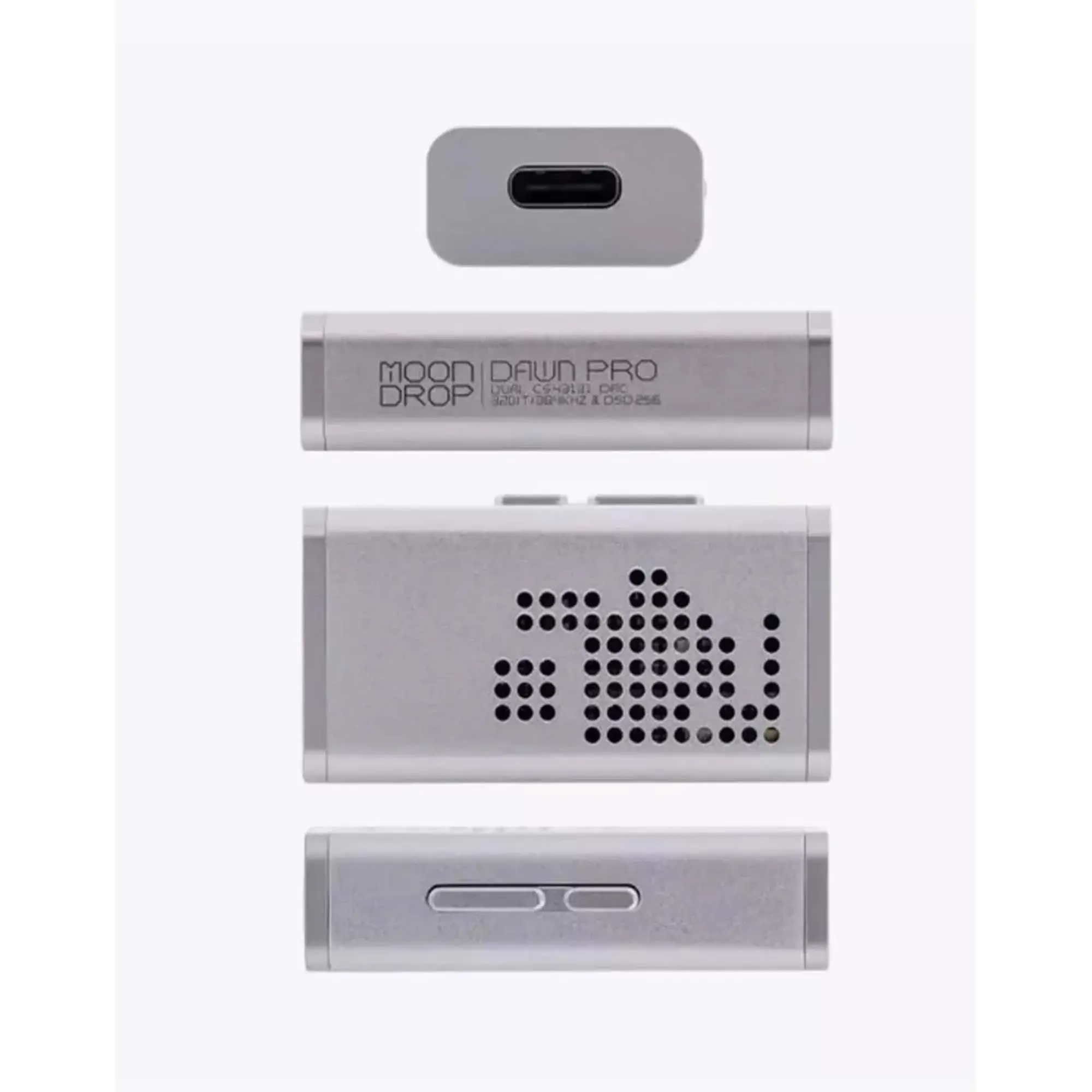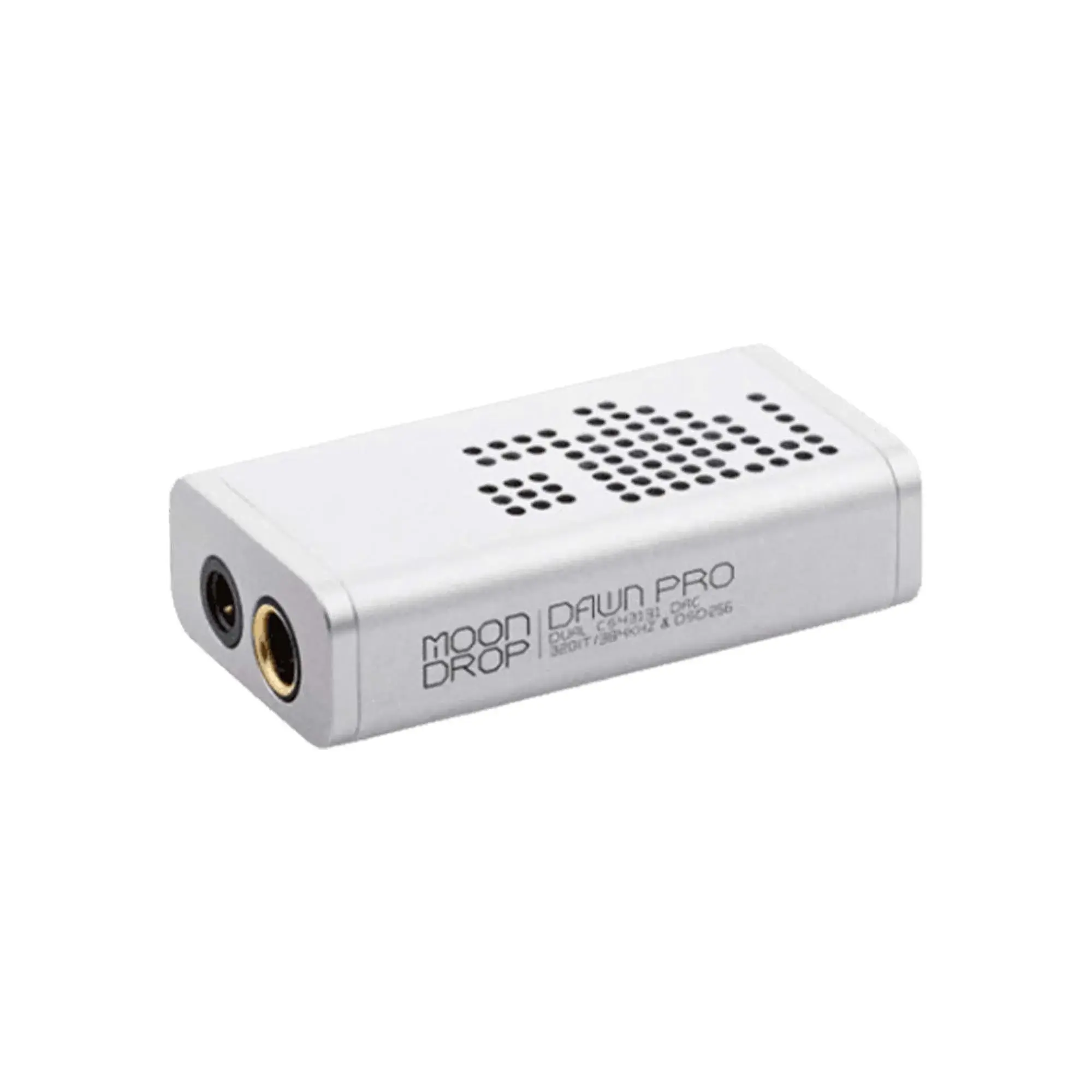 MoonDrop Dawn Pro - портативный усилитель, имеющего два гнезда для подключения наушников. В модели установлены два независимых тактовых генератора и три отдельных блока питания для разных цепей. Устройство имеет 100-уровневый плавный регулятор громкости и поддерживает аудиоформаты 32 бит/384 кГц и DSD256.