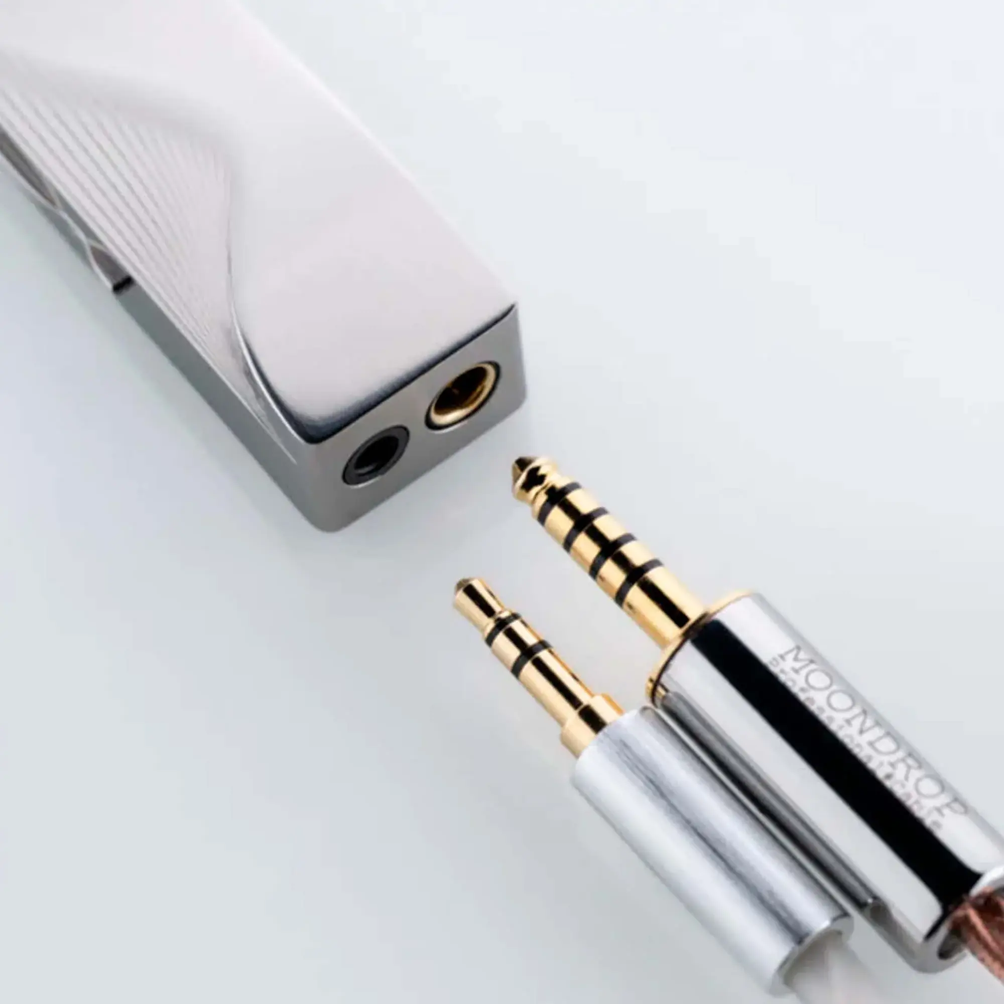 Как и оригинальный USB-ЦАП Moonriver 2, новый Moonriver 2 Ti от Moondrop также поддерживает как одностороннее, так и балансное подключение наушников. Он оснащён двумя выходными портами, одним 3.5-мм односторонним и вторым 4.4-мм балансным. Благодаря независимому 100-уровневому регулятору громкости вы можете легко сопрягать с Moonriver 2 Ti как чувствительные IEM, так и требующие довольно высокой мощности.