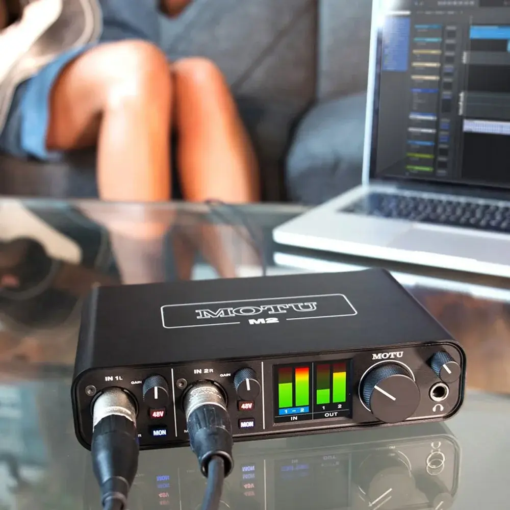 MOTU M2 - это интерфейс для записи и аудио мониторинга с первозданной четкостью, предназначенный для мобильного использования и небольших студий начального уровня, оснащенный той же ESS Sabre32 Ultra ЦАП технологией, которая используется в более дорогих аудио интерфейсах, плюс потрясающим 120 дБ динамическим диапазоном на основных выходах. ESS преобразователи также управляют выходом для наушников, который конкурирует с отдельными усилителями.