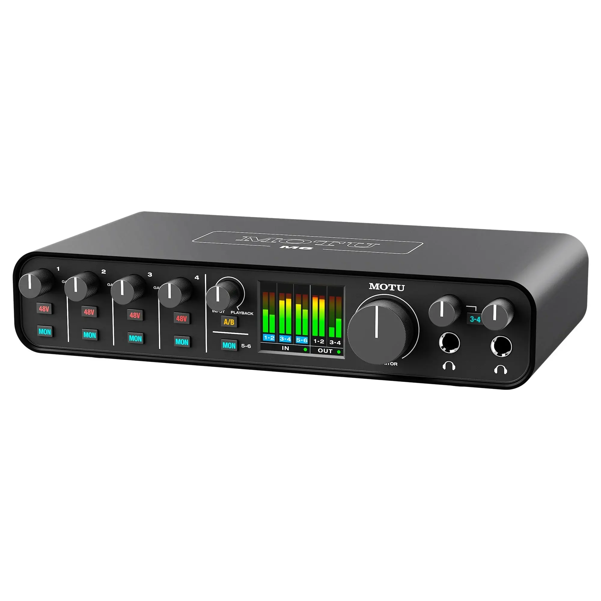 MOTU M6 — компактный настольный USB-аудиоинтерфейс с поддержкой разрешения записи на 24 бит/96 кГц, с шестью входами и четырьмя выходами, высококачественными цифро-аналоговыми преобразователями ESS Sabre32 Ultra и сверхмалым уровнем задержки.