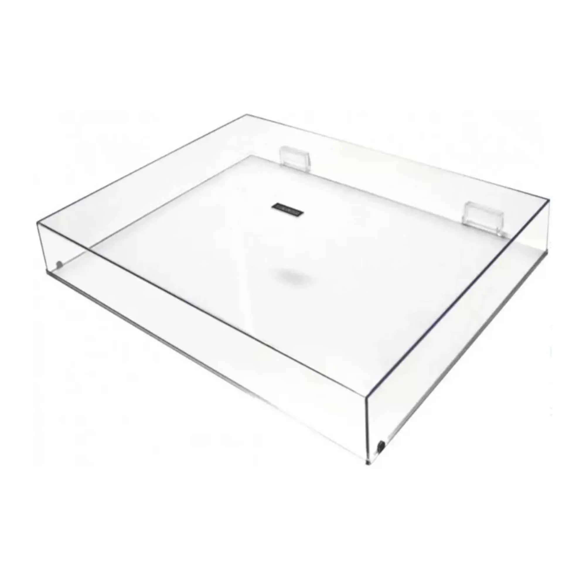Крышка легко крепится к проигрывателю с помощью двух петель. Крышка полностью покрывает проигрыватель, защищая его от пыли, грязи и случайных ударов. Имеет прозрачную поверхность, которая позволяет полностью наслаждаться видом проигрывателя и вращающейся пластинки без необходимости снимать крышку.