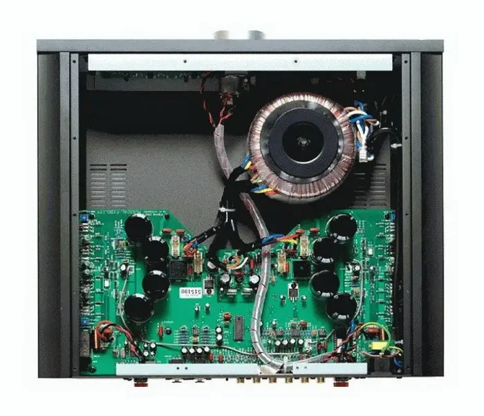 Питание усилителей мощности и блока предварительных усилителей осуществляется от раздельных источников с мощными фильтрующими конденсаторами. Невзирая на моноблочное исполнение предварительного усилителя, конструкторы приняли специальные меры для обеспечения максимальной идентичности характеристик левого и правого каналов. В Musical Fidelity M6Si широко используется технология поверхностного монтажа элементов на базе фирменных прецизионных комплектующих SMD Musical Fidelity. Это позволило существенно сократить электрический путь аудиосигнала, а также снизить влияние паразитных емкостей и индуктивностей печатных проводников на качество звука. Теперь даже самые сложные и динамичные произведения будут воспроизводиться с максимальной точностью и реализмом. Низкий коэффициент нелинейных искажений (0,007% в диапазоне от 20 Гц до 20 кГц) в сочетании с высокой выходной мощностью (220 Вт на нагрузке 8 Ом) и повышенным коэффициентом демпфирования позволяет Musical Fidelity M6Si легко «сработаться» с любой высококачественной акустикой. А малый уровень перекрестных помех ставит новинку в один ряд с аудиофильскими моноблочными усилителями.