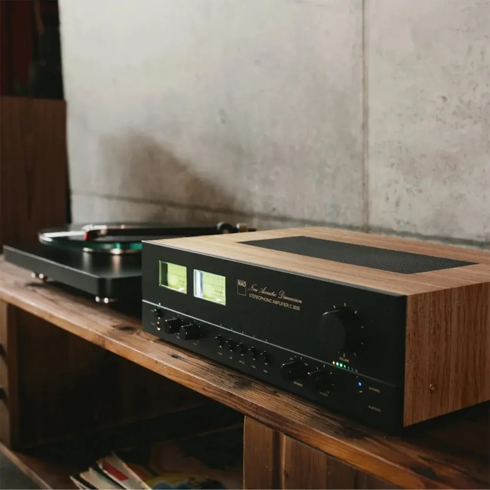 Интегральный усилитель NAD C3050 выполнен в модном винтажном дизайне, однако его электронная схема отвечает самым строгим современным требованиям к технике данного класса. На фронтальной панели аппарата расположены два крупных стрелочных индикатора: в зависимости от положения переключателя на задней панели они показывают уровень сигнала на входе или выходную мощность. Ниже находятся аналоговые органы управления, в том числе кнопки прямого выбора источников. Рукоятка регулятора громкости дополнена светодиодным указателем установленного уровня. Корпус аппарата отделан виниловой пленкой под натуральное дерево.