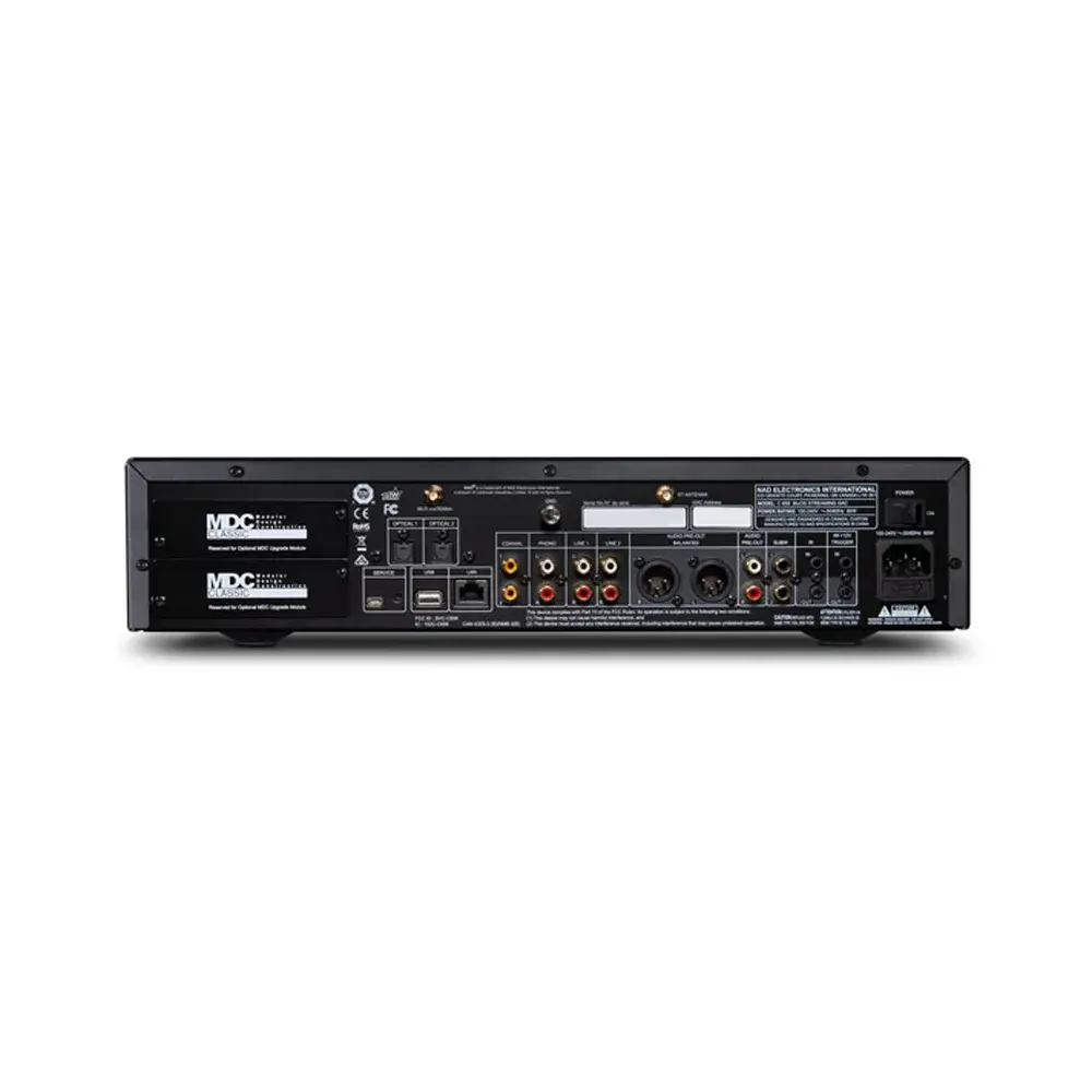 Важным преимуществом NAD C658 является поддержка стриминговой технологии BluOS, с подключением к сети по Ethernet или Wi-Fi. Управление системой возможно с помощью фирменного приложения, и аппарат может воспроизводить музыку с популярных онлайн-сервисов или сетевых устройств, с поддержкой аудио High Resolution (до 24 бит / 192 кГц), а также формата MQA и DSD. Кроме того, к предусилителю можно подключать Bluetooth-устройства, причем не только для трансляции музыки с портативных устройств, но и для передачи сигнала на беспроводные наушники. Также доступно воспроизведение USB-накопителей с аудиофайлами.