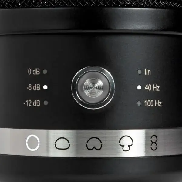 Это действительно что-то новое. Впервые всеми функциями микрофона можно управлять интуитивно через одну кнопку навигации. Визуальной изюминкой является подсветка в хромированной окантовке, в то время как статусы Pad и Low Cut отображаются с помощью светодиодов слева и справа от переключателя. Чтобы не отвлекать певцов, переключатель и дисплей расположены на задней стороне микрофона. Через 15 секунд после последнего нажатия, подсветка автоматически отключается.