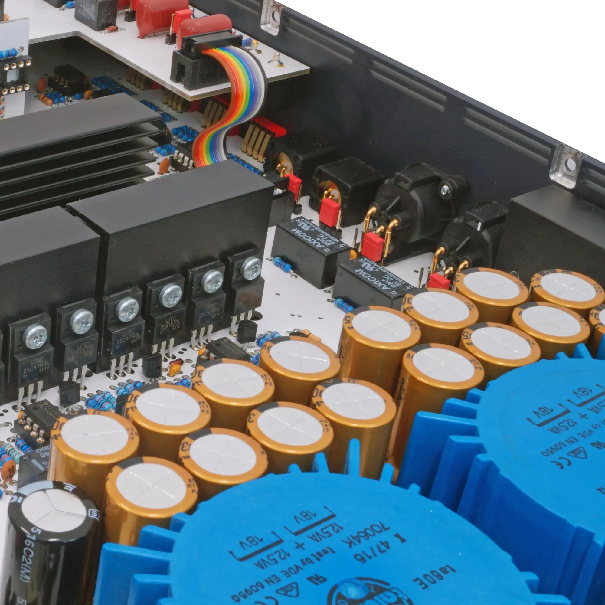 Усилитель получил полностью симметричную схему «двойного моно» с питанием от двух тороидальных трансформаторов, емкость их накопительных конденсаторов — 50000 мкФ. Для адаптации под разные наушники предусмотрена регулировка предварительного усиления в диапазоне от −18 до +24 дБ.