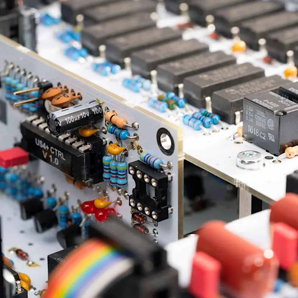 Отличие от старшей модели US 5 PRO заключается в том, что в US 5 использовали моторизованный потенциометр, а в US 5 PRO регулятор громкости подключен к микрокомпьютеру, который, в свою очередь, управляет сетью постоянных резисторов через износостойкие герконовые реле. Этот регулятор имеет 256 дискретных уровней громкости.
