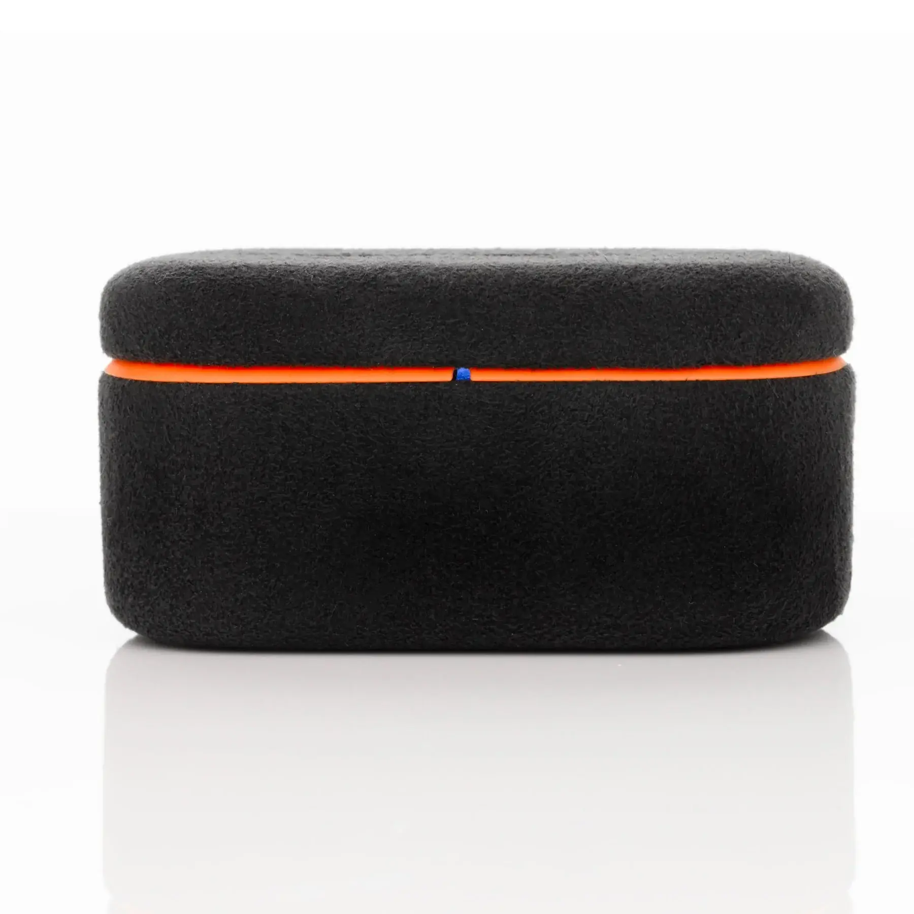 Эргономичный корпус выполнен на 3D-принтере с низкопрофильной формой, выполненной по индивидуальному заказу, лицевой панелью, расписанной вручную, и встроенным сенсорным датчиком. Время автономной работы составляет 7,5 часов при 50% громкости. Дизайнерский чехол для зарядки, обтянутый алькантарой, оснащен беспроводной зарядкой и аккумулятором емкостью 500 мАч, который обеспечивает 4 дополнительных заряда.