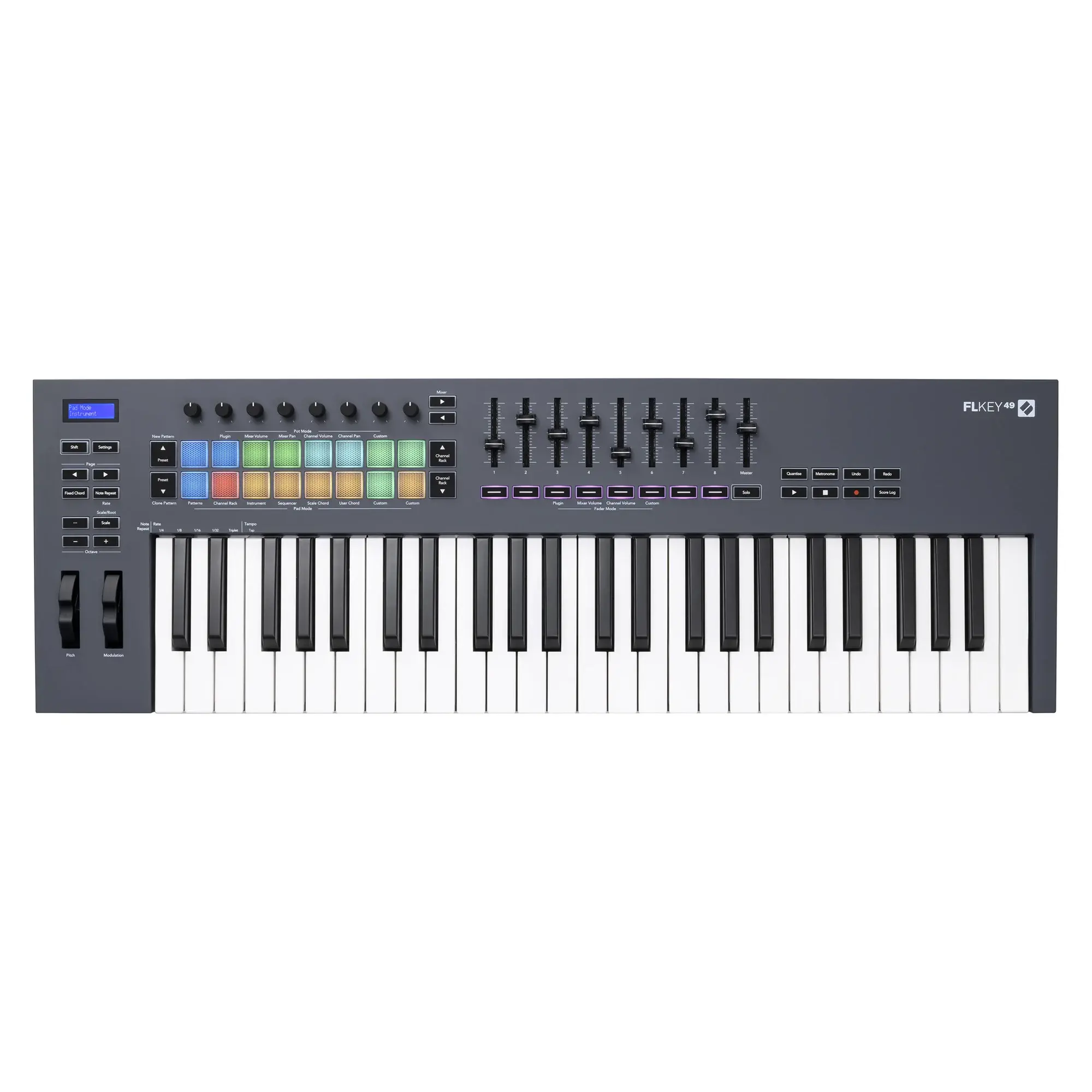 Novation FLkey 49 — MIDI-контроллер, оптимизированный для работы с FL Studio. Оснащен 49 клавишами и 16 пэдами, чувствительными к силе нажатия, 9 фейдерами по 45 мм и 8 настраиваемыми регуляторами. Контроллер обеспечивает мгновенный доступ к секвенсеру, Channel Rack и микшеру FL Studio. Режимы Scale и Chord упрощают написание мелодических и гармонических партий.