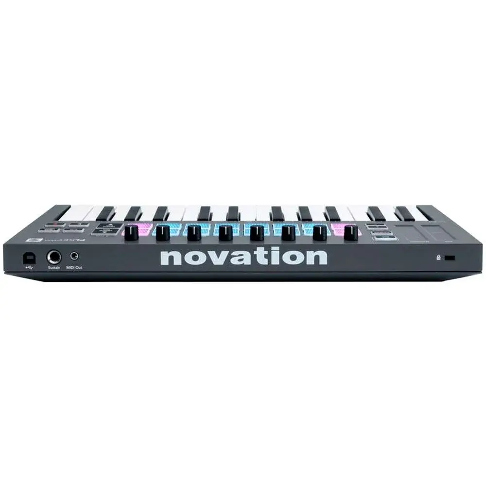 Novation FLkey Mini — компактная MIDI-клавиатура на 25 мини-клавиш и 16 пэдов. Полностью интегрирована с DAW FL Studio и заметно ускоряет работу в этом софте. Предусмотрен маппинг пэдов на функции секвенсора. Два режима работы с пэдами позволяют играть напрямую в Channel Rack или FPC, и запускать слайсы в SliceX. Быстро прописать мелкие длительности в ритмических партиях можно с помощью кнопки Note Repeat.