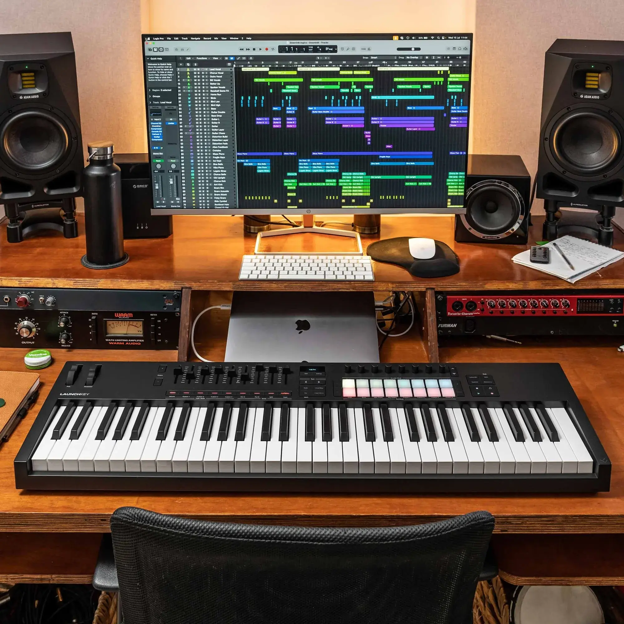 Launchkey поддерживает все основные DAW "из коробки" благодаря простой пользовательской интеграции для Ableton Live, Logic, Cubase, Reason Studios, Reaper, FL Studio и Ardour. С их помощью вы получаете аппаратный рабочий процесс, который дает вам полный контроль над транспортными функциями, навигацией по временной шкале, микшированием, эквалайзером, запуском клипа, а также параметрами инструментов и эффектов. А при использовании Session View от Ableton Live или Live Loops от Logic 16 барабанных пультов используются в качестве пусковых установок для клипов в стиле Launchpad с RGB-подсветкой, которая идеально соответствует тому, что вы видите на экране.