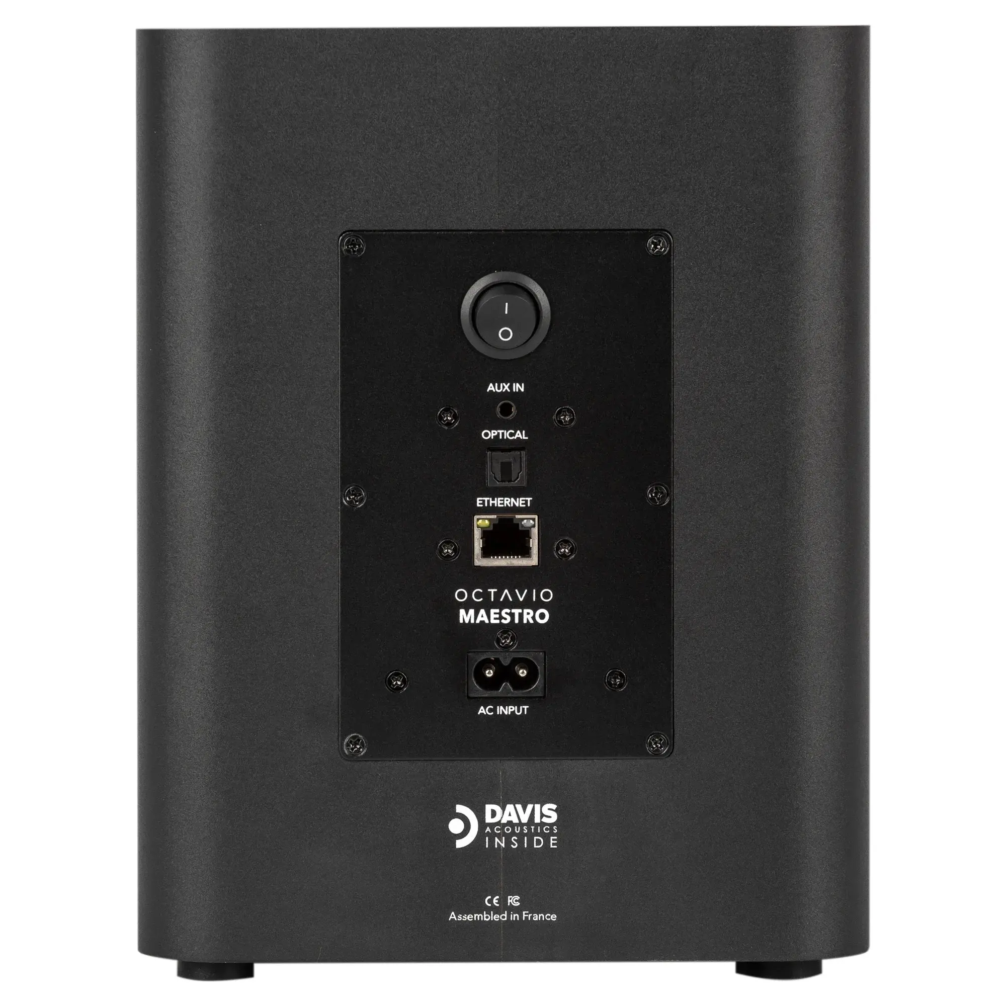 Octavio Maestro – активная акустическая система, созданная для Octavio французским производителем акустики Davis Acoustics. Мощность 70 Вт, Закрытый корпус, 2х пассивных радиатора, усилитель класса D. Стриминг на базе платформы Linkplay, поддержка мультирум, беспроводное стерео, Airplay, Bluetooth, Tidal, Spotify, DEEZER, Qobuz. Оптический вход для подключения к телевизору.