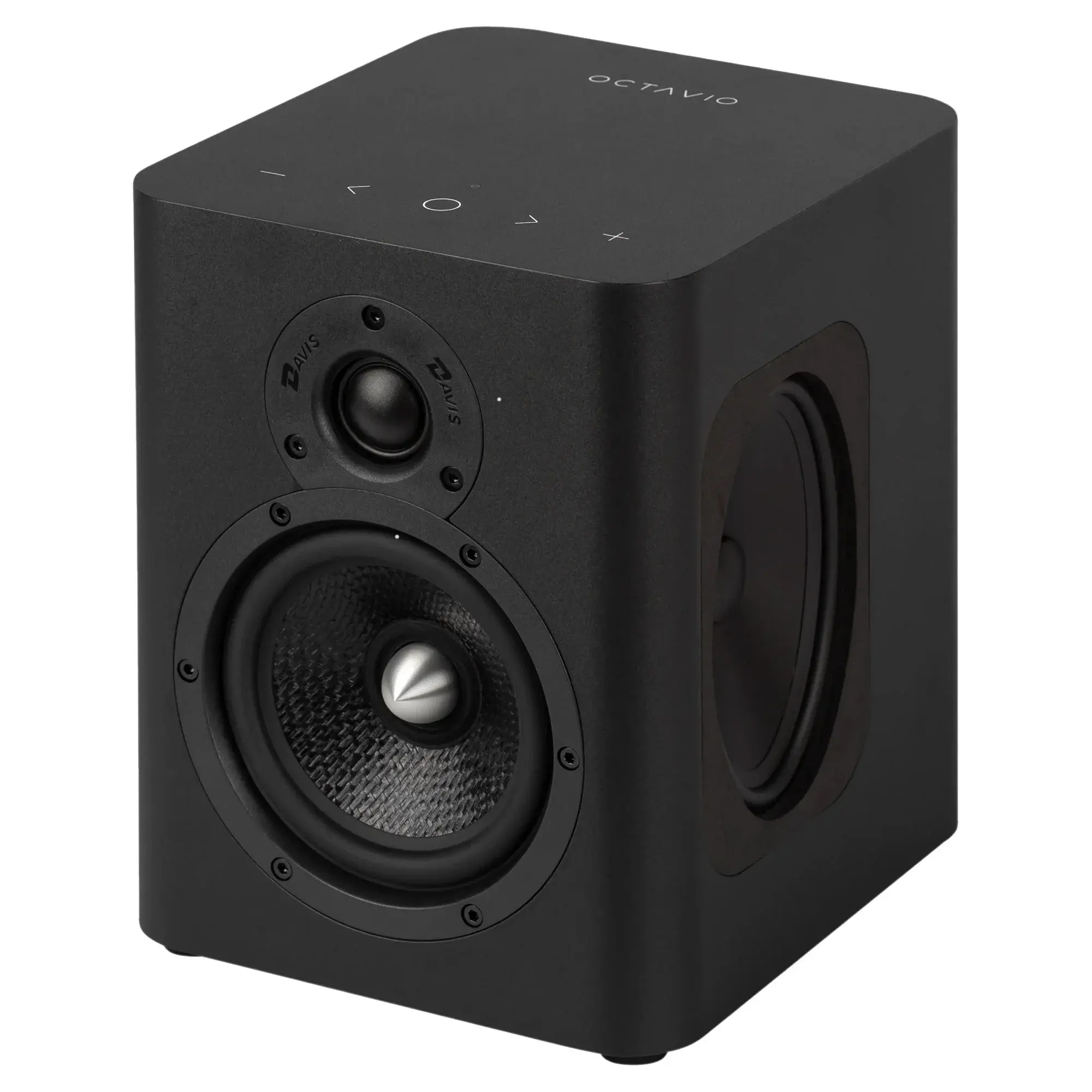 Octavio Maestro – активная акустическая система, созданная для Octavio французским производителем акустики Davis Acoustics. Мощность 70 Вт, Закрытый корпус, 2х пассивных радиатора, усилитель класса D. Стриминг на базе платформы Linkplay, поддержка мультирум, беспроводное стерео, Airplay, Bluetooth, Tidal, Spotify, DEEZER, Qobuz. Оптический вход для подключения к телевизору.