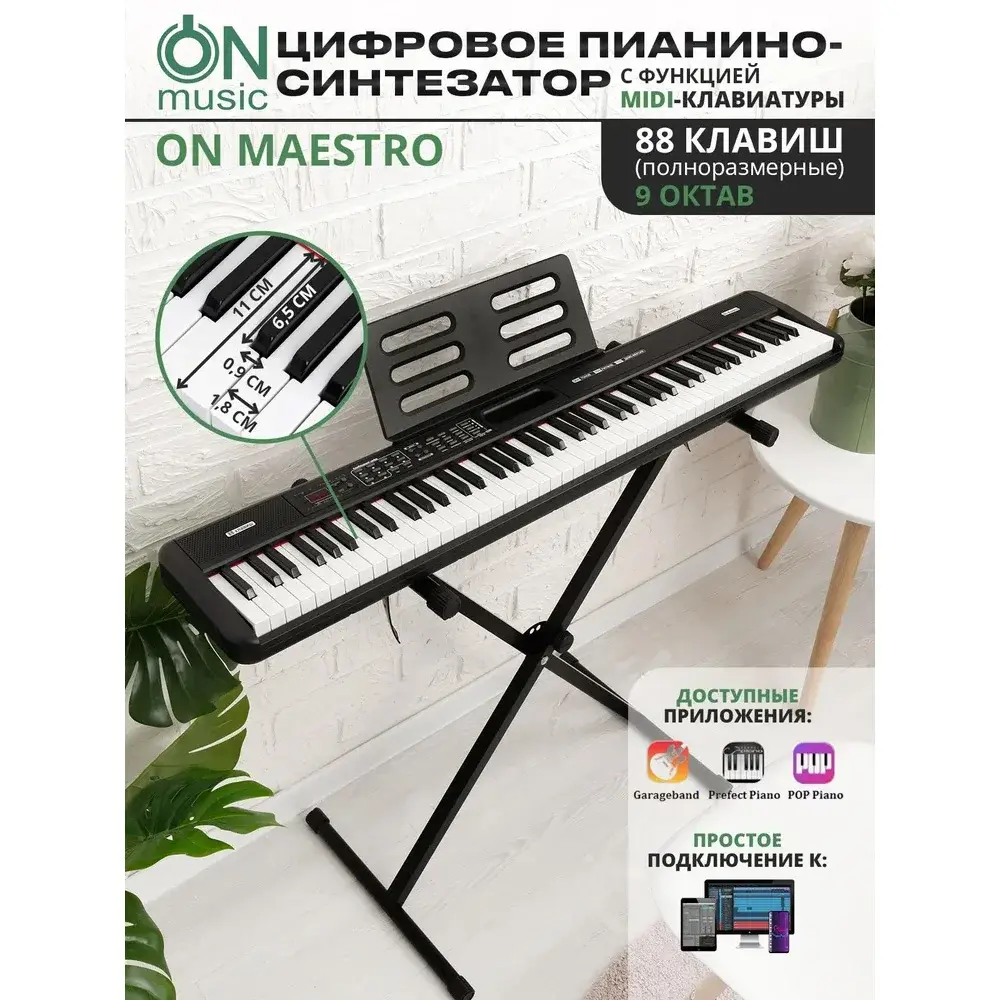 ON Maestro - это высококачественное цифровое пианино-синтезатор, которое сочетает в себе функции синтезатора и MIDI-клавиатуры.