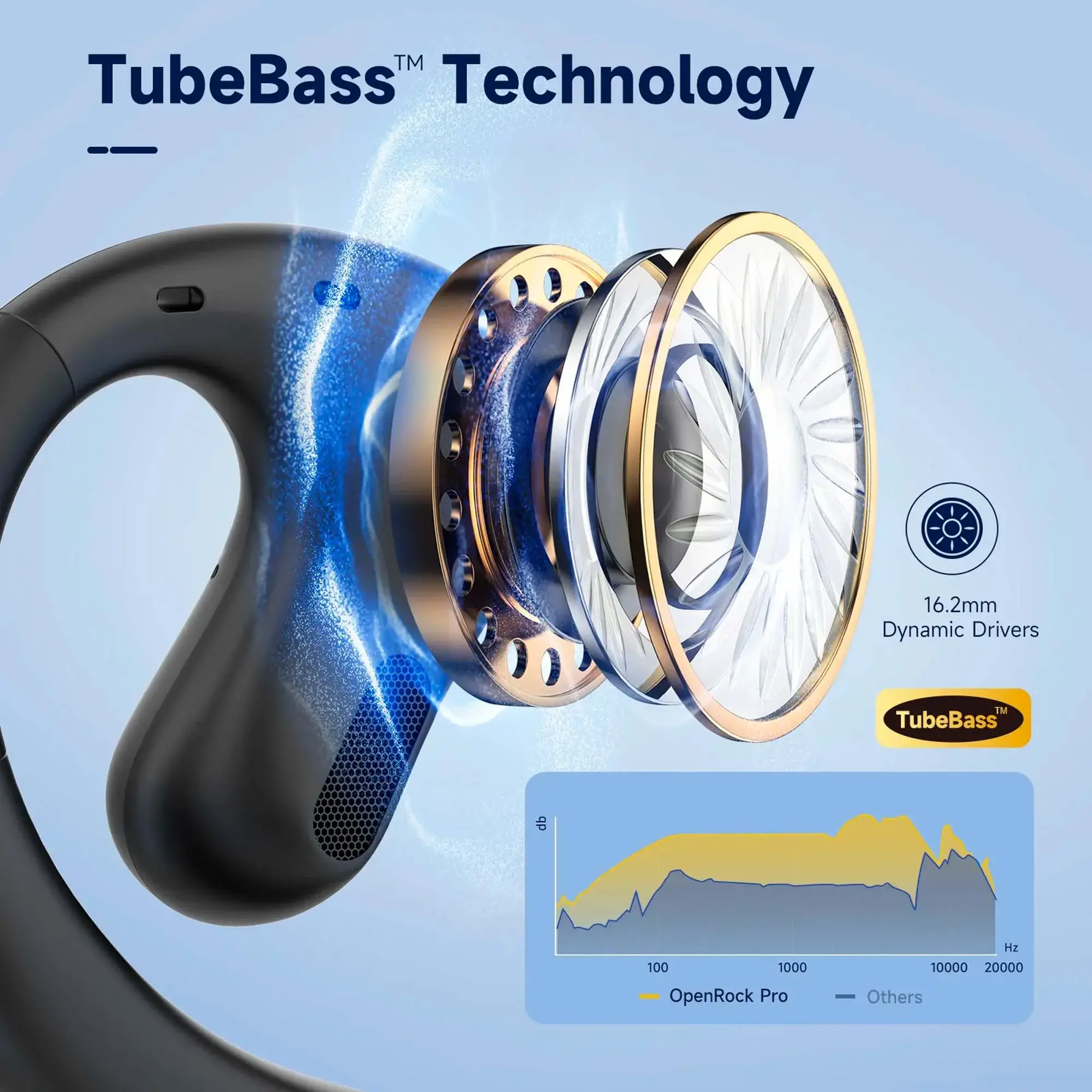 OneOdio OpenRock Pro оснащены динамическими драйверами диаметром 16.2 мм и технологией TubeBass, которая усиливает низкочастотный резонанс. Это позволяет получить глубокие, плотные и насыщенные басы, которые добавляют энергии вашему тренировочному ритму. При этом высокие частоты остаются ясными, а детали музыки — чёткими и живыми, что делает прослушивание максимально погружающим и насыщенным.