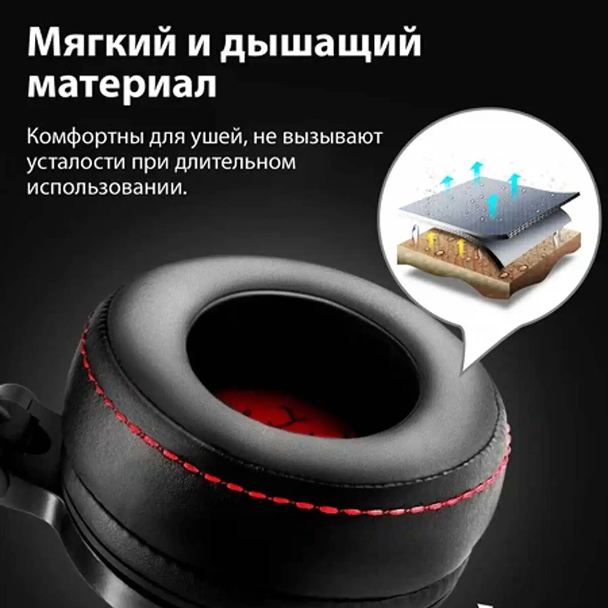 наушники подходят для длительного использования, оснащены мягкими амбушюрами из дышащего материала и оголовьем с функцией регулировки;