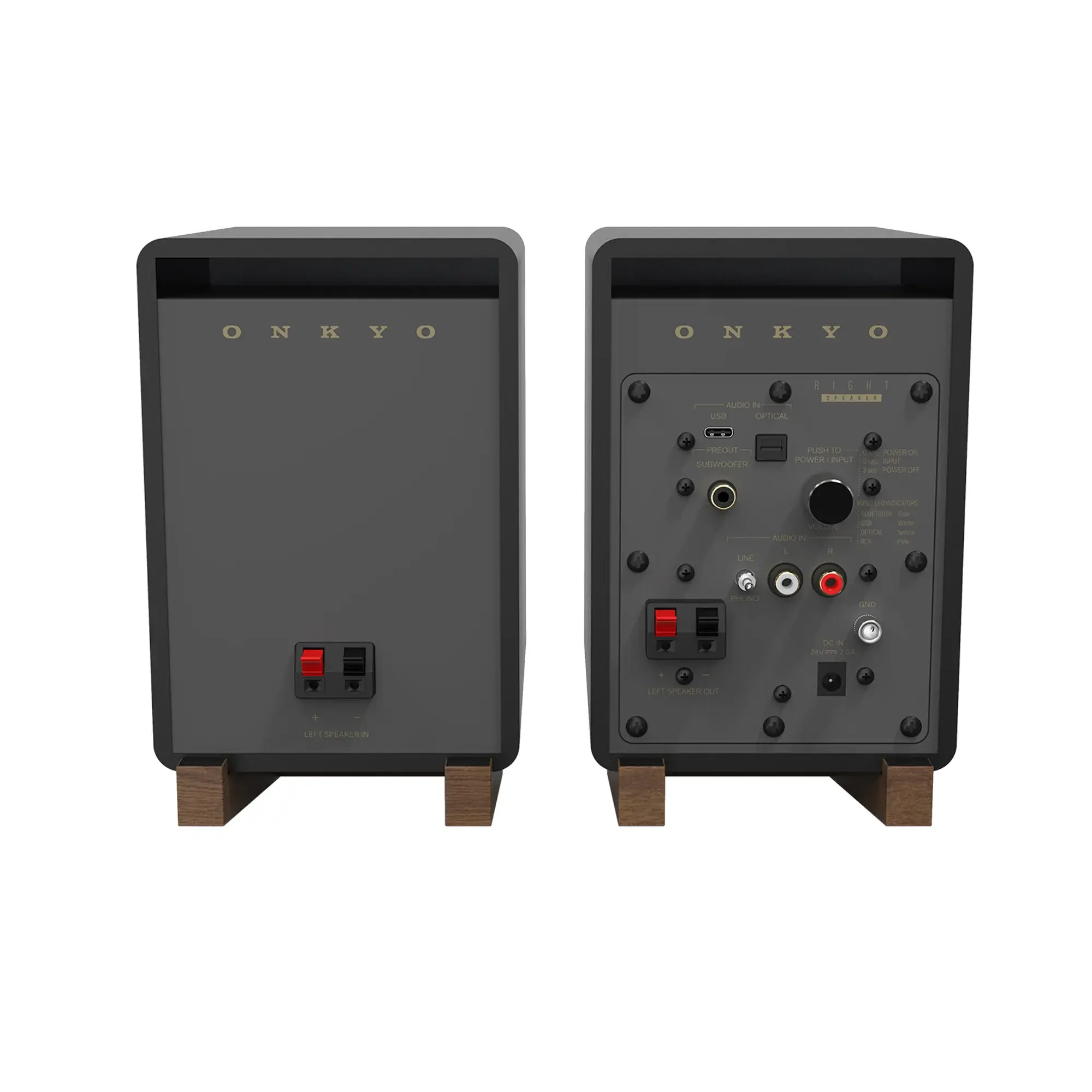 Onkyo GX-10DB – 2-полосные компактные активные полочные акустические системы с фазоинвертором, с Bluetooth 5.3 и входами для проводной коммутации, пультом ДУ и специальными подставками-основаниями для наилучшего воспроизведения. Колонки относятся к серии Creator, разработанной в первую очередь для создателей контента, удаленно работающих профессионалов и заядлых геймеров. Особенности: фазоинвертор — щелевой порт на задней панели; Max. SPL: 110 дБ; мощность системы: 30 Вт; твитер: 19 мм с коррекцией; НЧ: конический диффузор 76 мм; Bluetooth 5.3; встроенный фонокорректор; выход для подключения сабвуфера. Активные акустические системы — это колонки, которым не требуется внешнее усиление или обработка для получения невероятного звучания. Акустические системы Onkyo серии Creator занимают меньше места на столе, чем системы с пассивными колонками, поэтому у вас останется больше свободного пространства без ущерба для качества звука. Встроенный усилитель класса D обеспечивает чистое и мягкое звучание, а оригинальная технология цифровой обработки сигнала позволяет воспроизводить звук именно таким, каким он был задуман авторами. Тщательно подобранные материалы, чистые линии, привлекательные пропорции — такие колонки будут хорошо выглядеть в любом окружении. колонки Onkyo серии Creator, благодаря лаконичной и продуманной конструкции, станут органичным дополнением вашего творческого пространства, не теряя при этом своей индивидуальности. Колонки Onkyo GX-10DB сочетают отличные характеристики, современные функции, включая технологию Bluetooth 5.3, и доступные комплектующие, обеспечивая высококлассное звучание, которое вы так долго искали. Для проводного подключения колонки оборудованы портом USB-C, переключаемым стереовходом line/phono и цифровым оптическим входом. Встроенная технология Bluetooth 5.3 обеспечивает стабильное беспроводное соединение. Каждая колонка оснащена основанием из ABS и MDF, наклоняющим ее для оптимального угла прослушивания. Колонки Onkyo Creator комплектуются пультом дистанционного управления. Комплектация: полочная акустика - 2 шт; блок питания; пульт ду; акустический кабель; кабель USB Type C – USB Type A; документация.