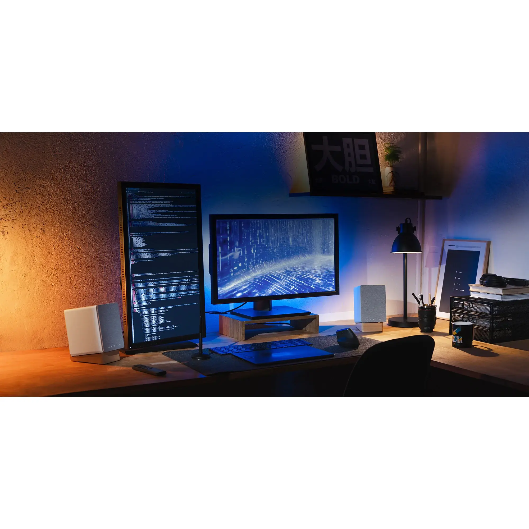 Onkyo GX-30ARC – 2-полосные компактные активные полочные акустические системы с фазоинвертором, с Bluetooth 5.3, hdmi (ARC) и входами для проводной коммутации, пультом ДУ и специальными подставками-основаниями для наилучшего воспроизведения. Колонки относятся к серии Creator, разработанной в первую очередь для создателей контента, удаленно работающих профессионалов и заядлых геймеров.