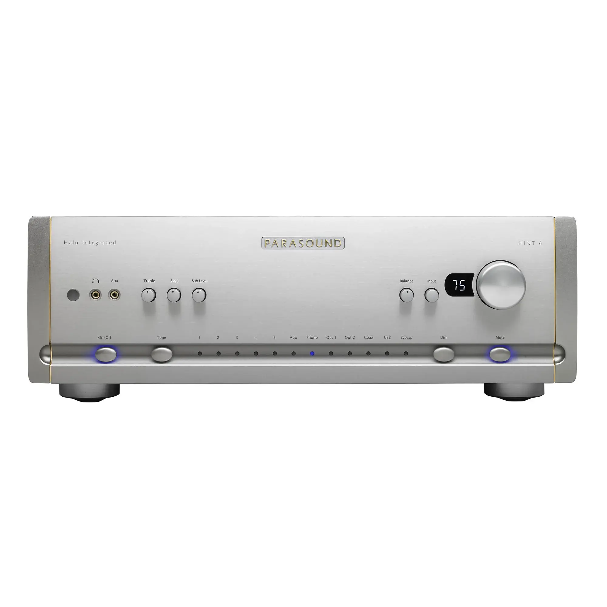 Parasound HINT 6 получил новый аналоговый блок регулировки громкости от Burr-Brown вместе с солидной ручкой, базирующейся на шарикоподшипнике, и опцией установки начального ее уровня при включении. Текущая громкость теперь отображается на маленьком дисплее, расположенном рядом с ней. При воспроизведении музыкального контента с ПК через USB-порт типа B уже не требуется установка драйвера не только для Mac-продукции, но и для компьютеров, работающих под Windows 10.Также повышен коэффициент усиления для MC-картриджей во встроенном блоке фонокорректора, улучшено разделение каналов и произведены кое-какие косметические изменения во внешнем облике.