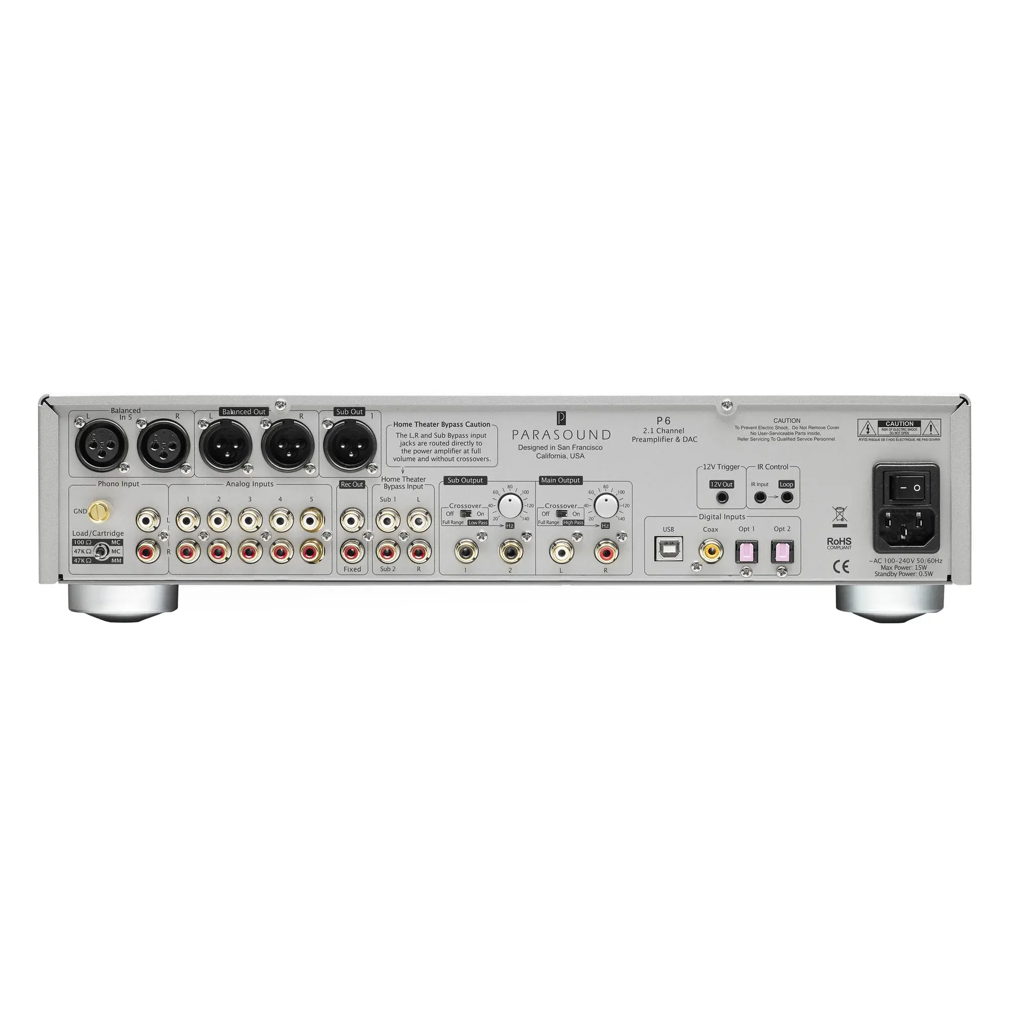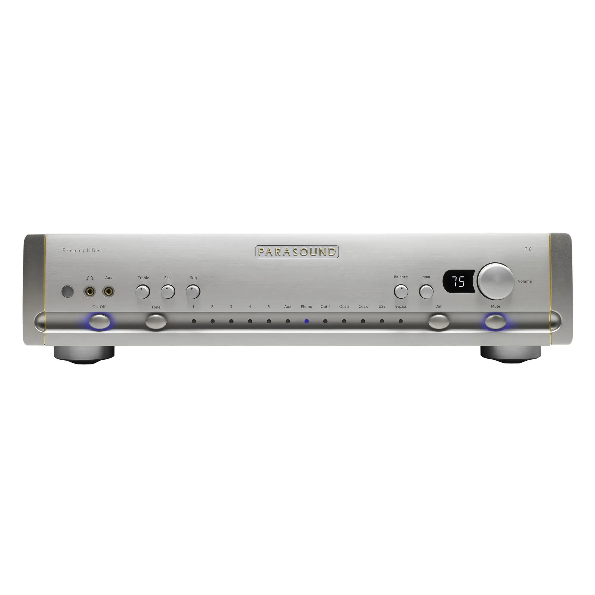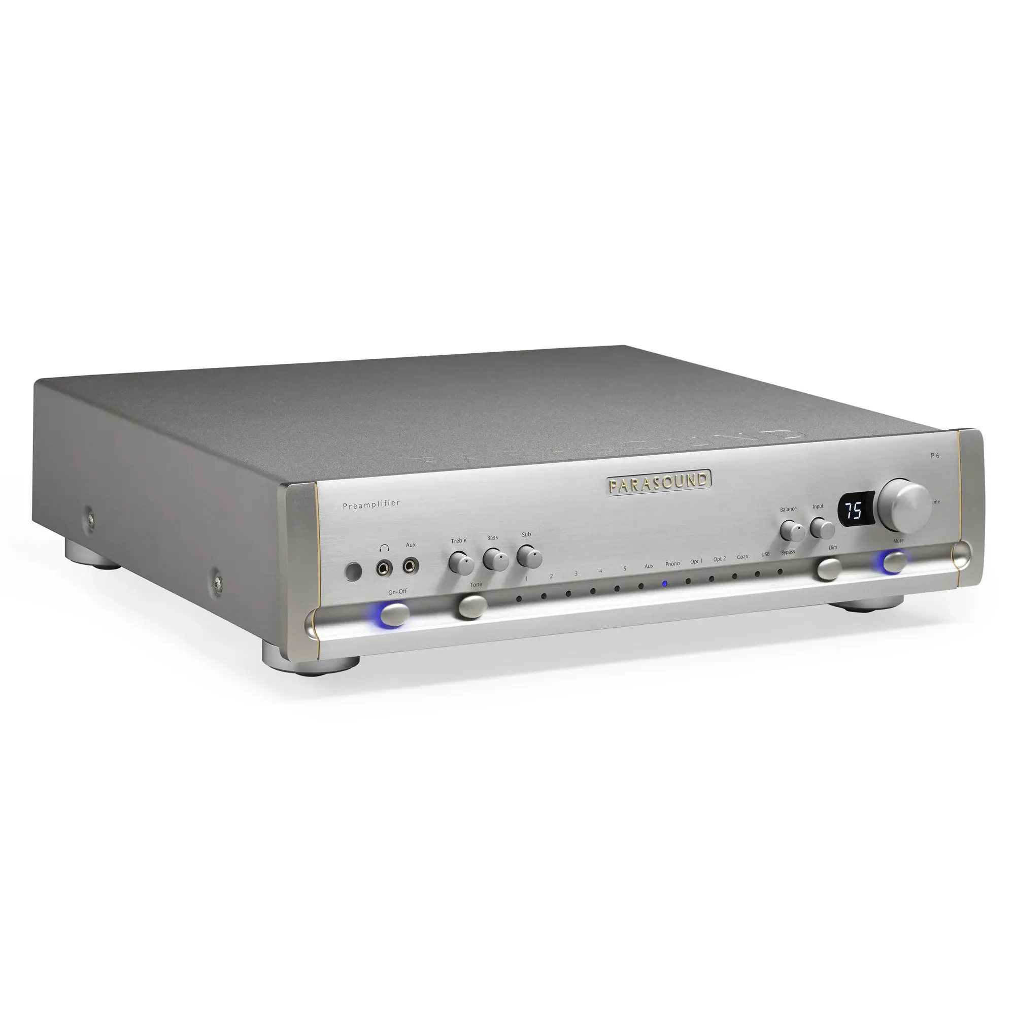 Изюминка конструкции Parasound P6 это выведенный на первую панель регулятор громкости сабвуфера. Не понравилось, как инсталлятор настроил бас? Просто подойдите к предусилителю и поверните ручку громкости сабвуфера. Прибавить баса можно и другим, более цивилизованным способом. У Parasound P6 для этого есть отключаемый темброблок.