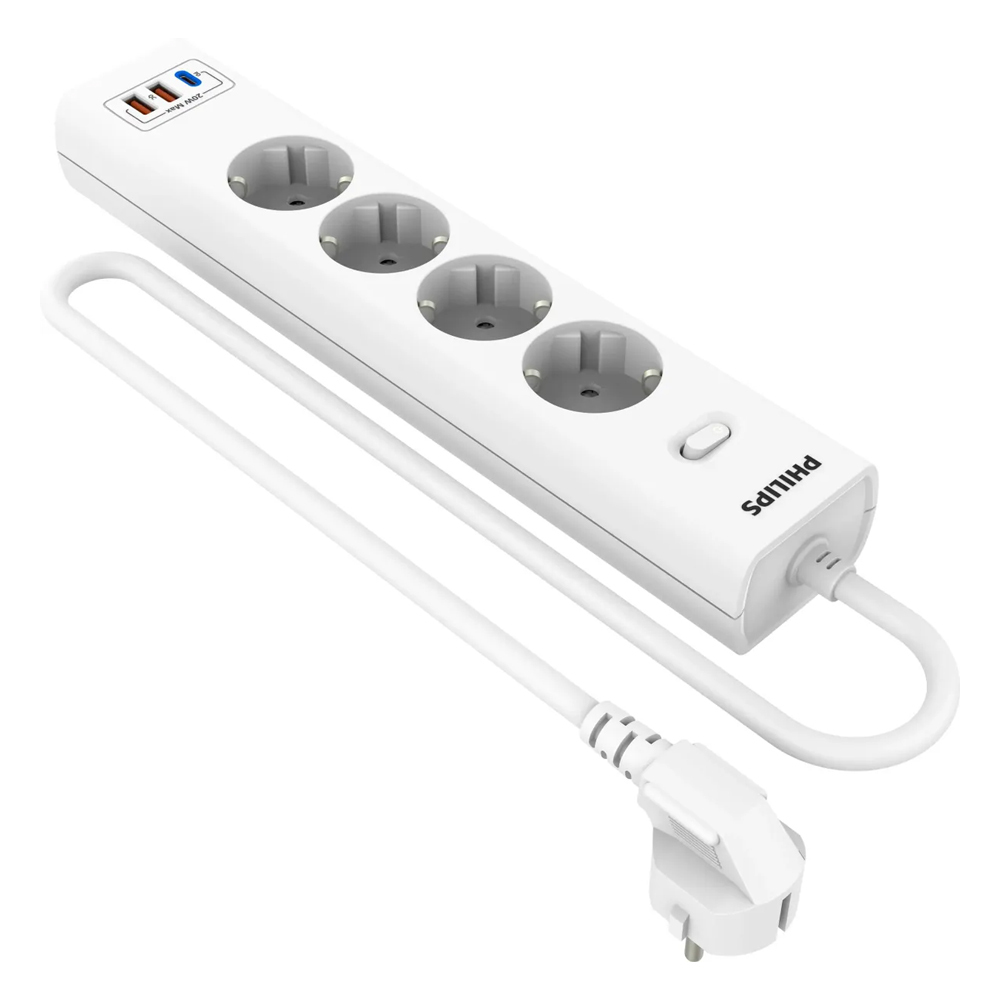 Philips CHP4346WA/51 - cетевой фильтр на 4 розетки с тремя портами usb pd/qc3.0 (5/9/12в) 20вт.