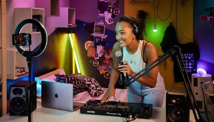 Впервые в контроллере Pioneer DJ этого уровня выход главного аудио можно дополнить звуком с микрофона, если он подключен. Вам больше не требуется внешнее оборудование, например, звуковая карта или отдельный микшер, если нужно добавить речь или звук к своему выступлению и вывести его через компьютер. Все звуки будут направлены в Serato DJ Lite, чтобы вести трансляцию оттуда.