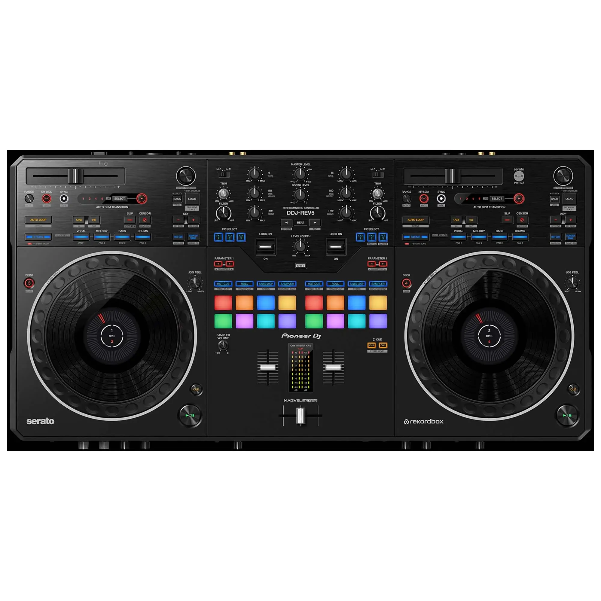 Эта 2-канальная модель, совместимая с Serato DJ Pro и rekordbox, предлагает аутентичный скретчинг и множество инновационных функций, чтобы помочь диджеям, выступающим в открытом формате, раскыть свой творческий потенциал. Контроллер DDJ-REV5 оснащен большими джогами для сложного и точного скретчинга с помощью надежного и изящного фейдера MAGVEL FADER. Кроме того, длинные слайдеры темпа DDJ-REV5 расположены горизонтально над секциями деки, а сенсорные клавиши и Lever FX — в секции микшера, имитируя компоновку, которую предпочитают диджеи открытого формата во всем мире.