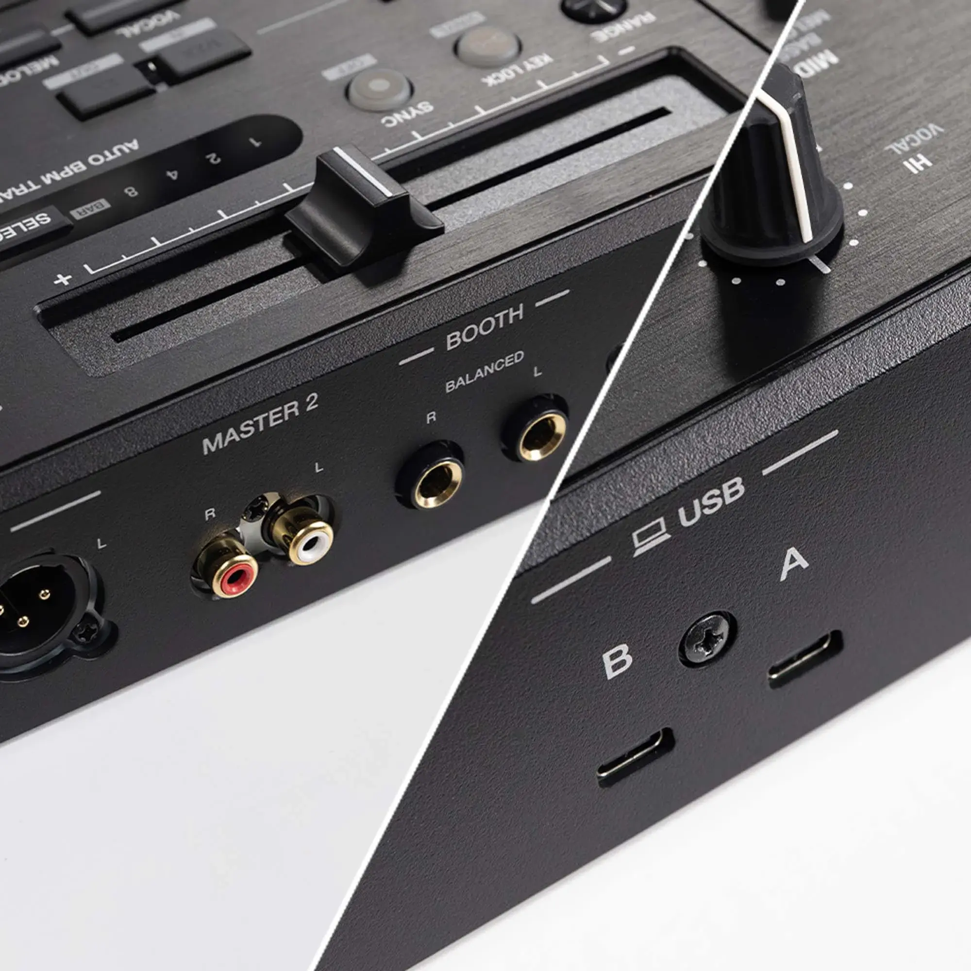Благодаря широкому выбору входов и выходов, включая мастер-выход XLR, который идеально подходит для использования в профессиональной среде, DDJ-REV5 можно использовать как центр масштабной конфигурации. Эта модель также оснащена 2 портами USB Type-C для подключения к ПК/Mac, чтобы легко переключаться между диджеями простым щелчком переключателя на контроллере.